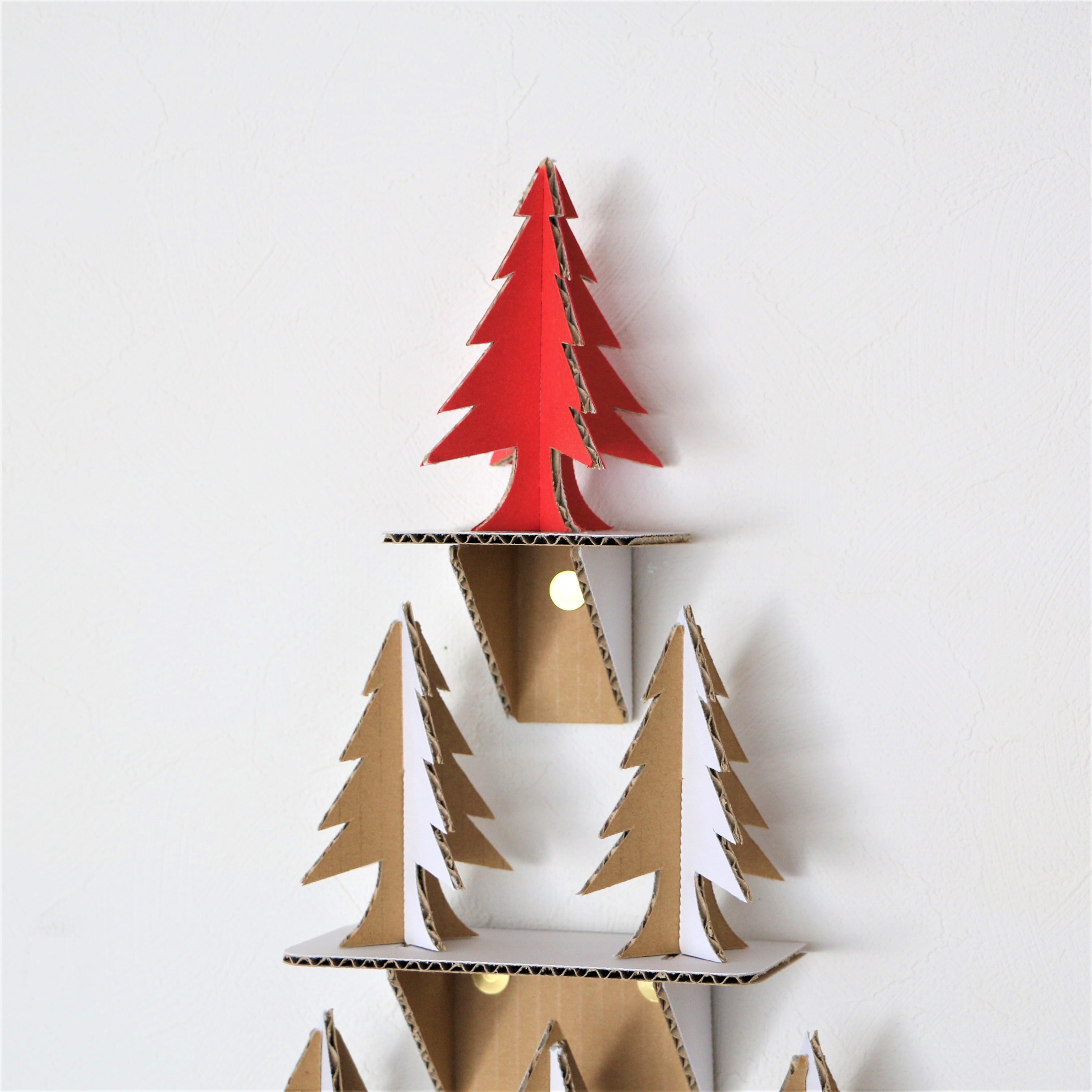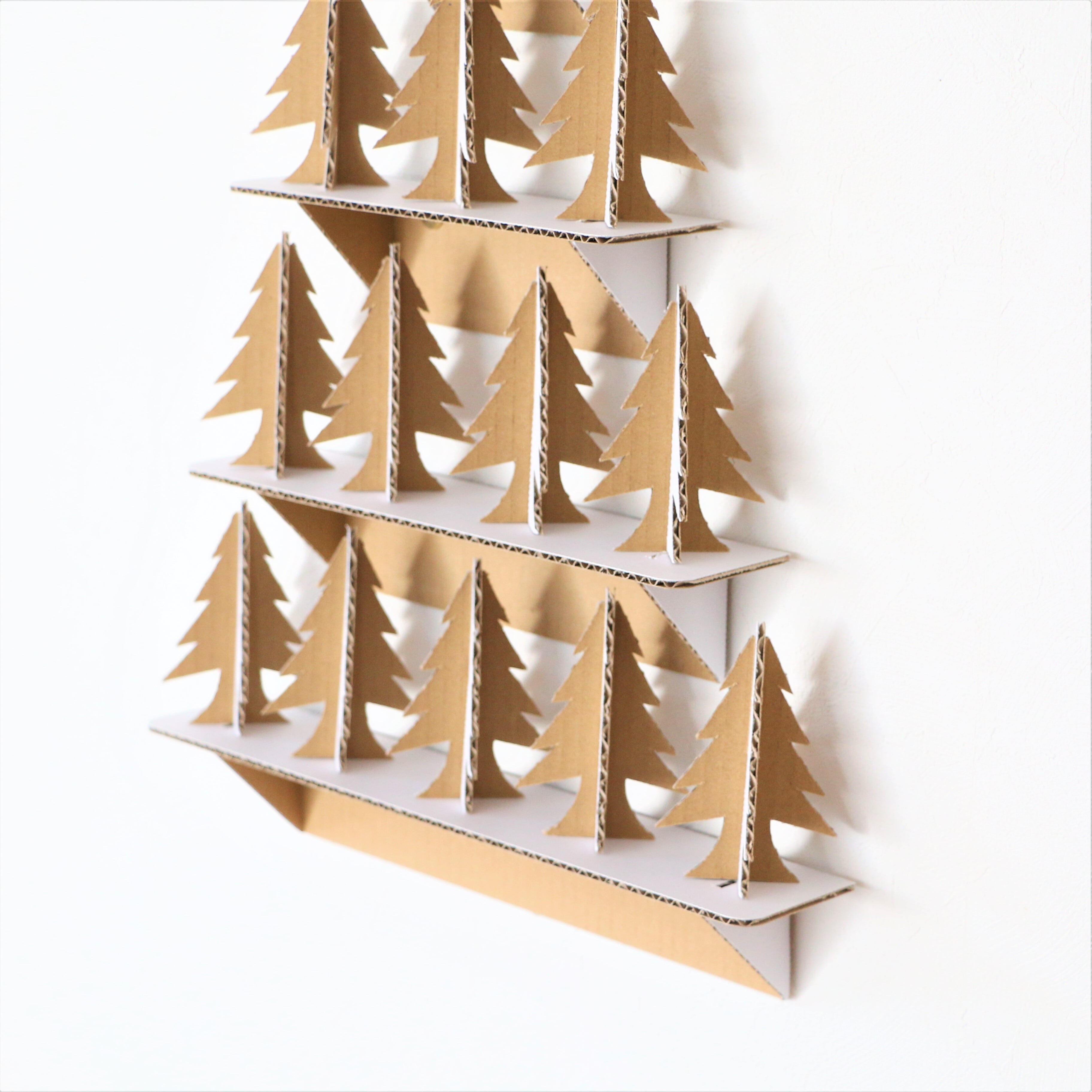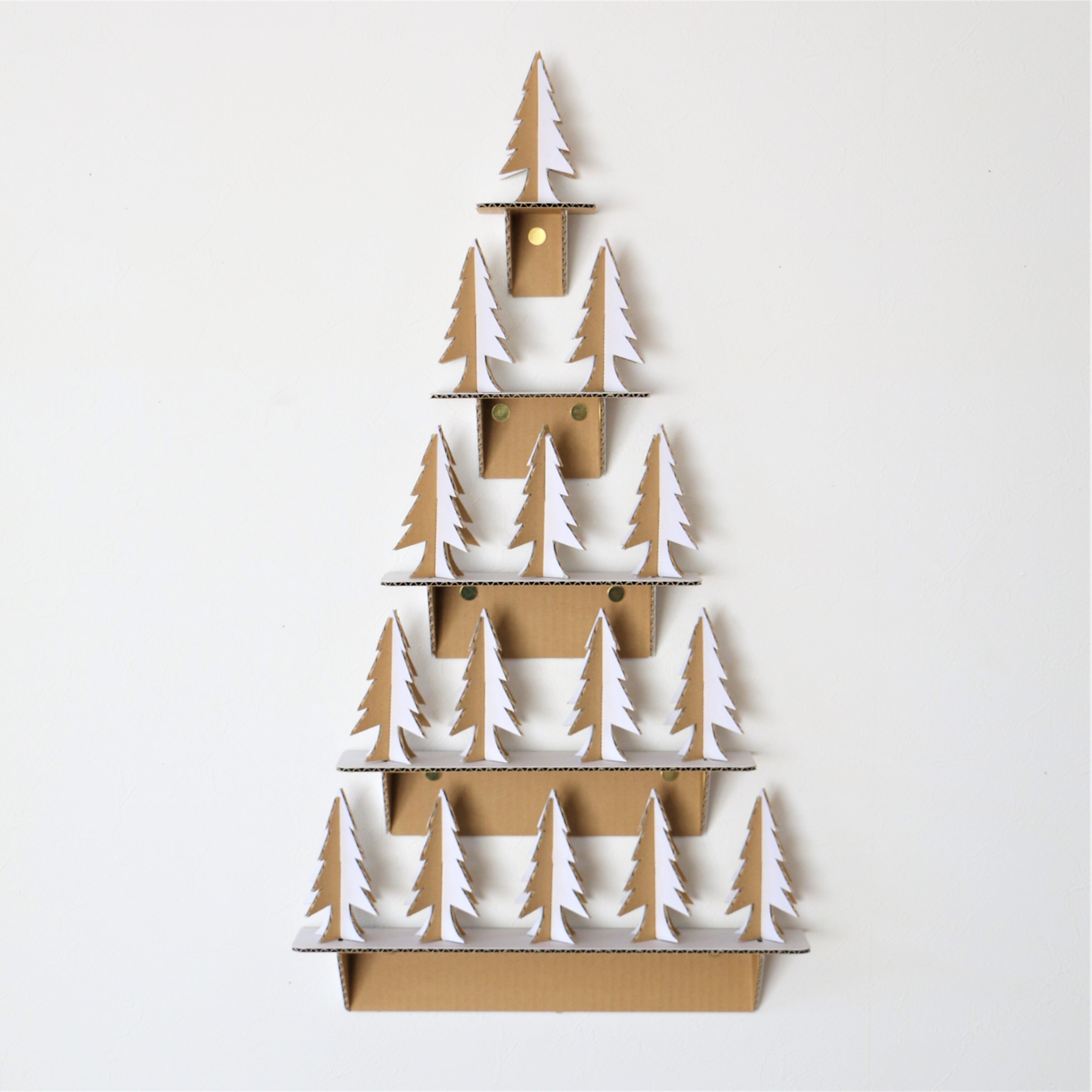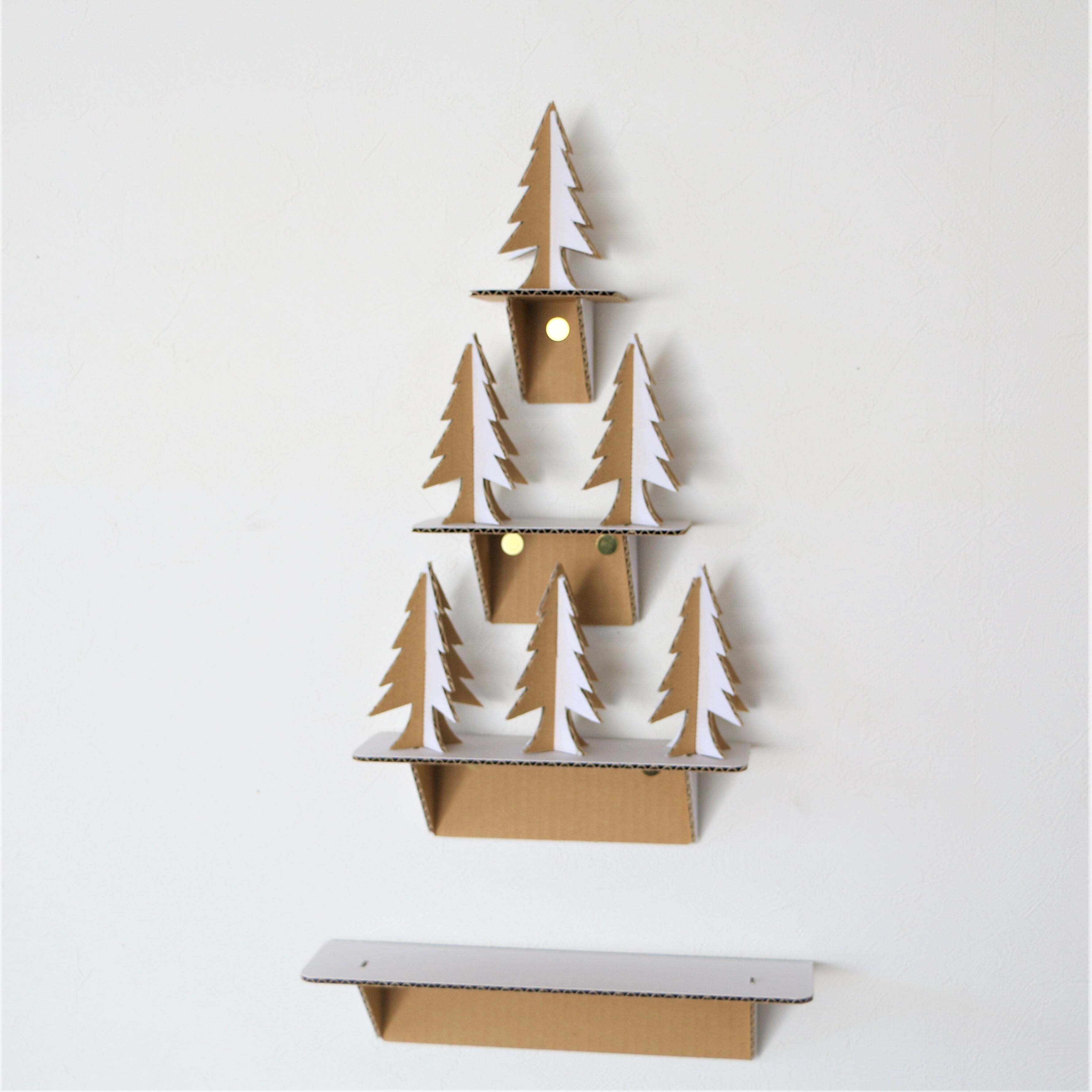 素材はダンボールで片面は白色、もう一方の片面は素材を活かしたクラフト色になっておりシックでオシャレなクリスマスツリーです。