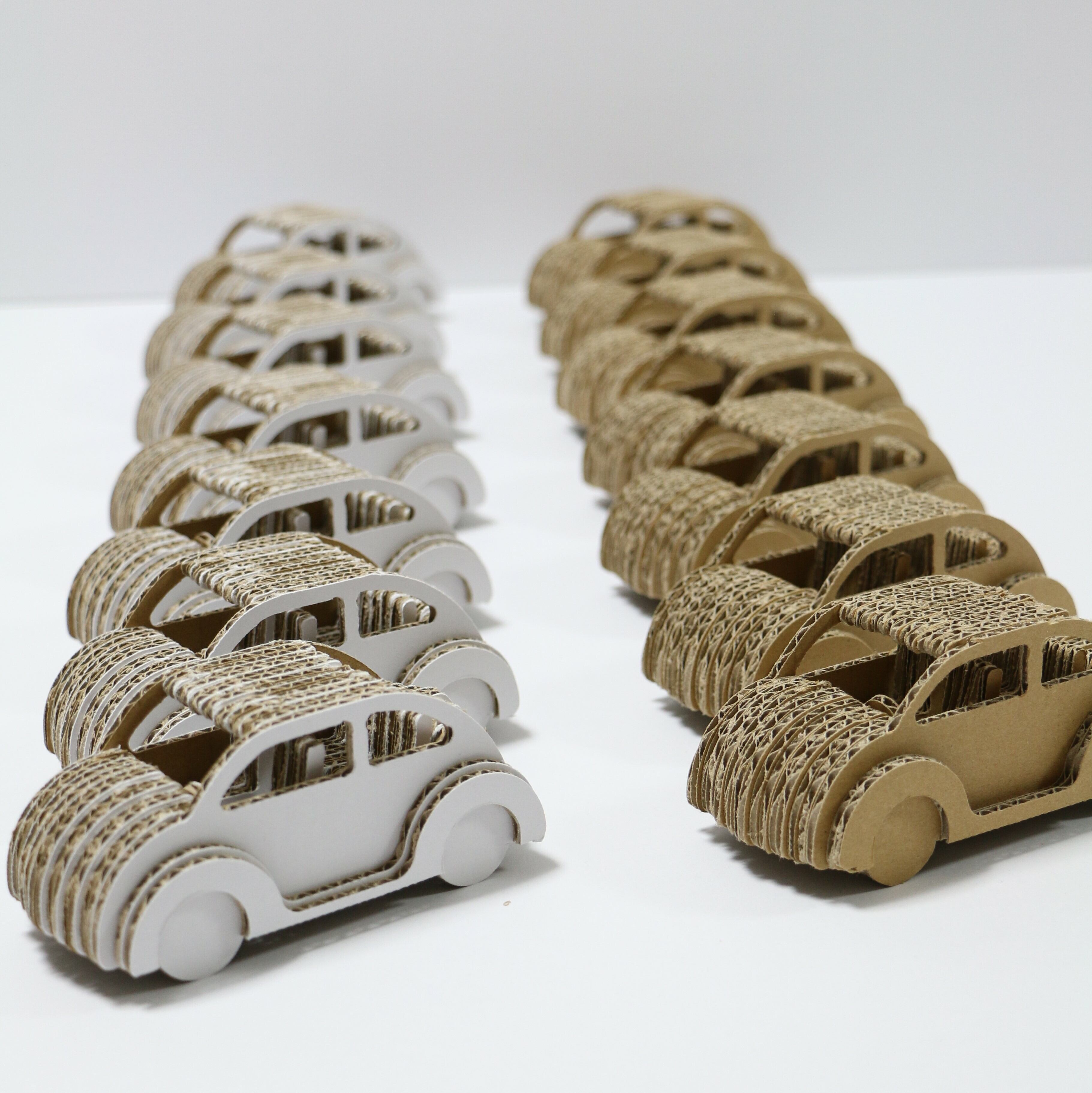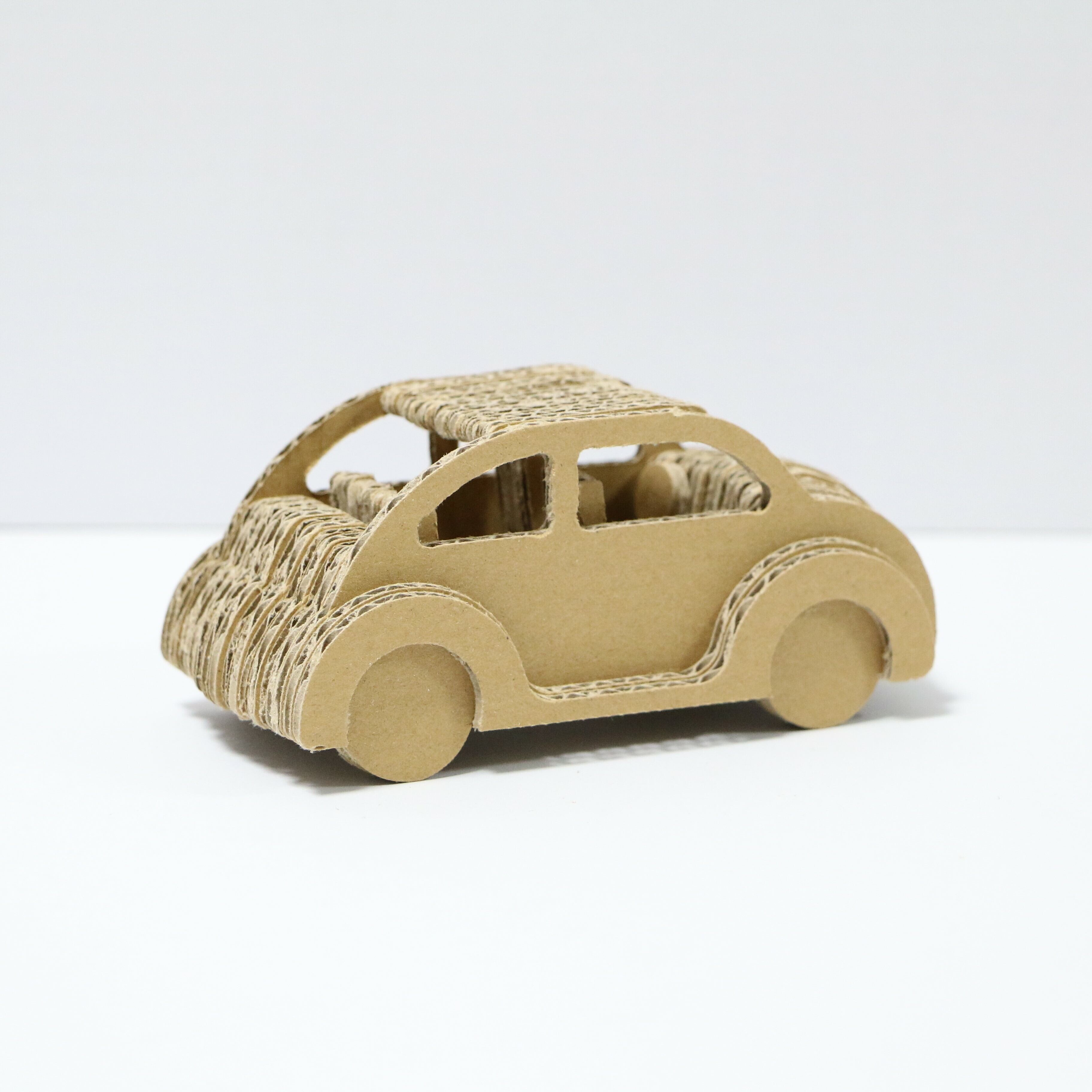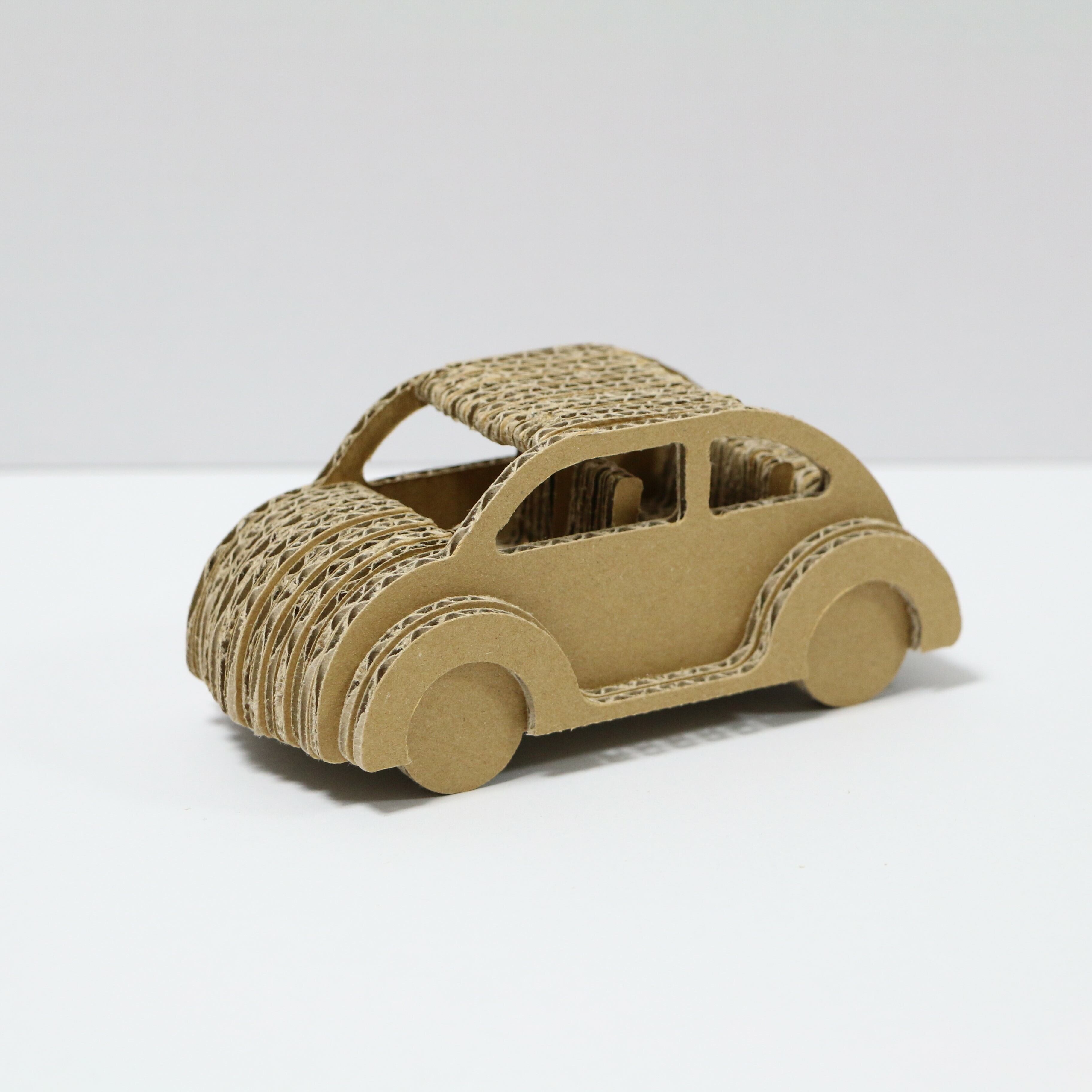 とてもかわいいオシャレな車なので飾って楽しめる商品です。さらにこのダンボールカーは作る楽しみを味わって頂ける商品になっています。