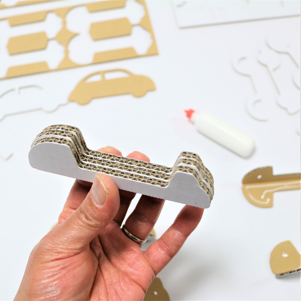 ダンボールカー組み立て工作キットは全てのパーツがダンボールで出来ています。