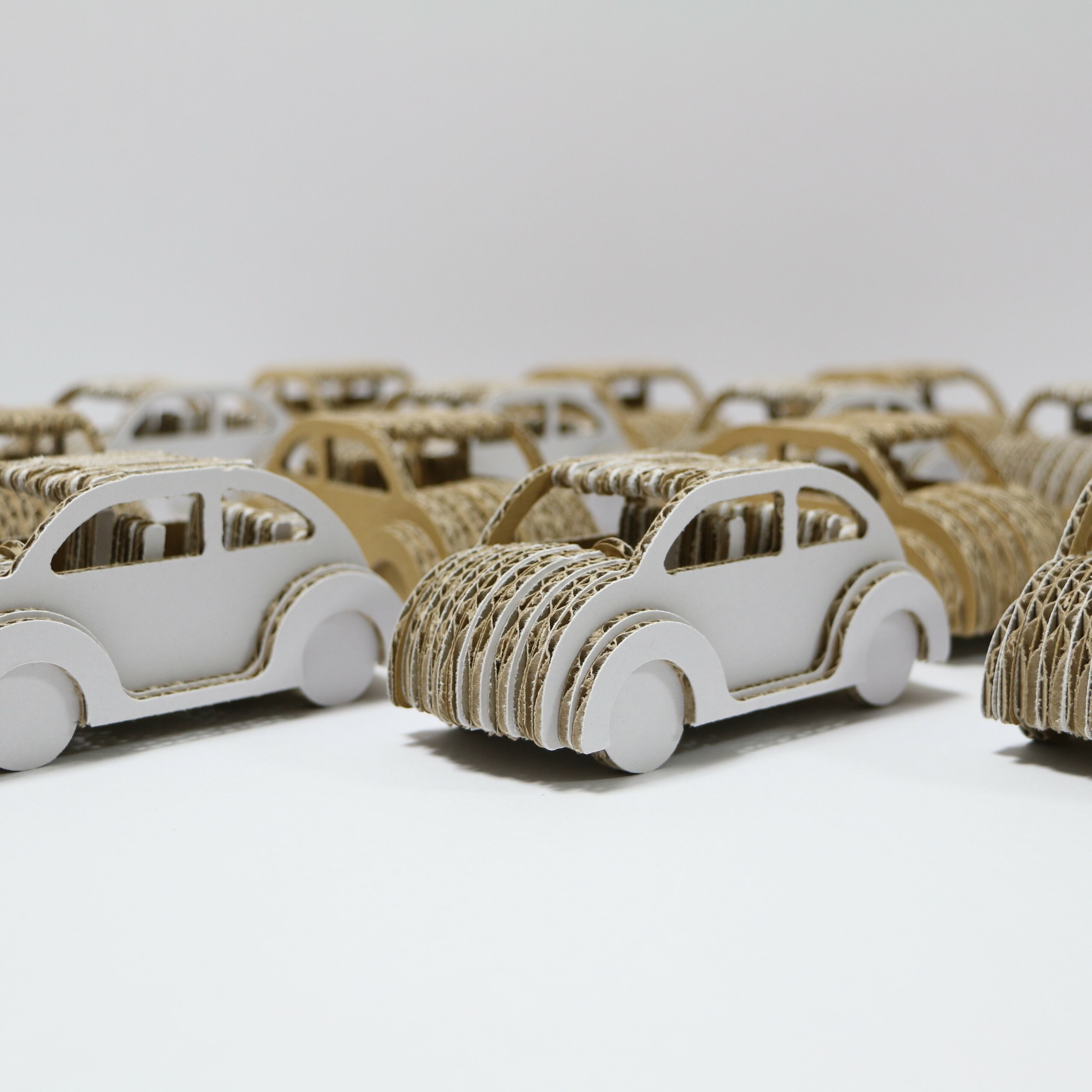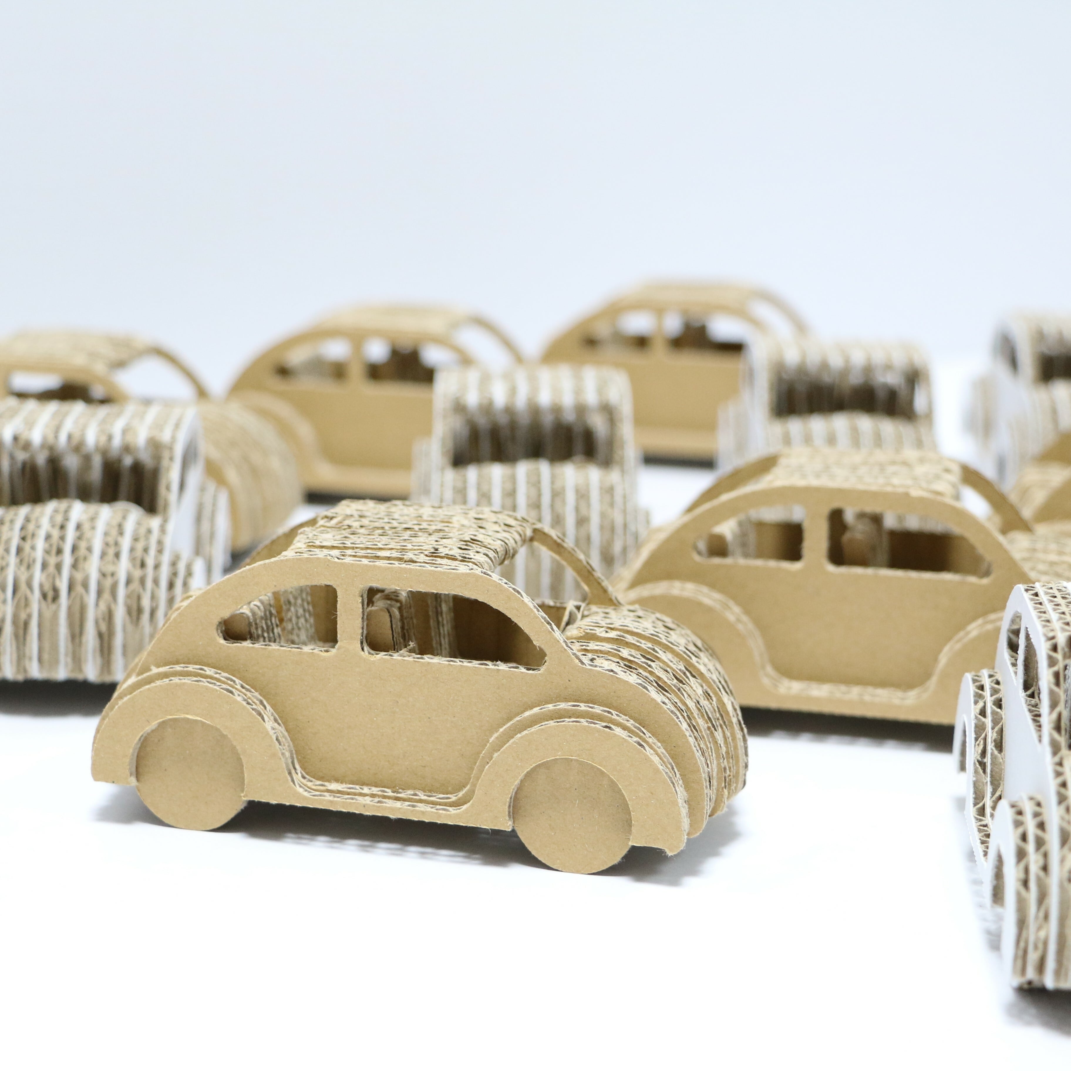 ダンボールカー組み立て工作キットは【難しくはないけど簡単でもない!】がコンセプトになっています。ボディの貼り合わせ方でラインが微妙に変わったり、ハンドルを左右どちらにつけるか、シートの位置などなど、小さな車が完成するまでワクワクします。