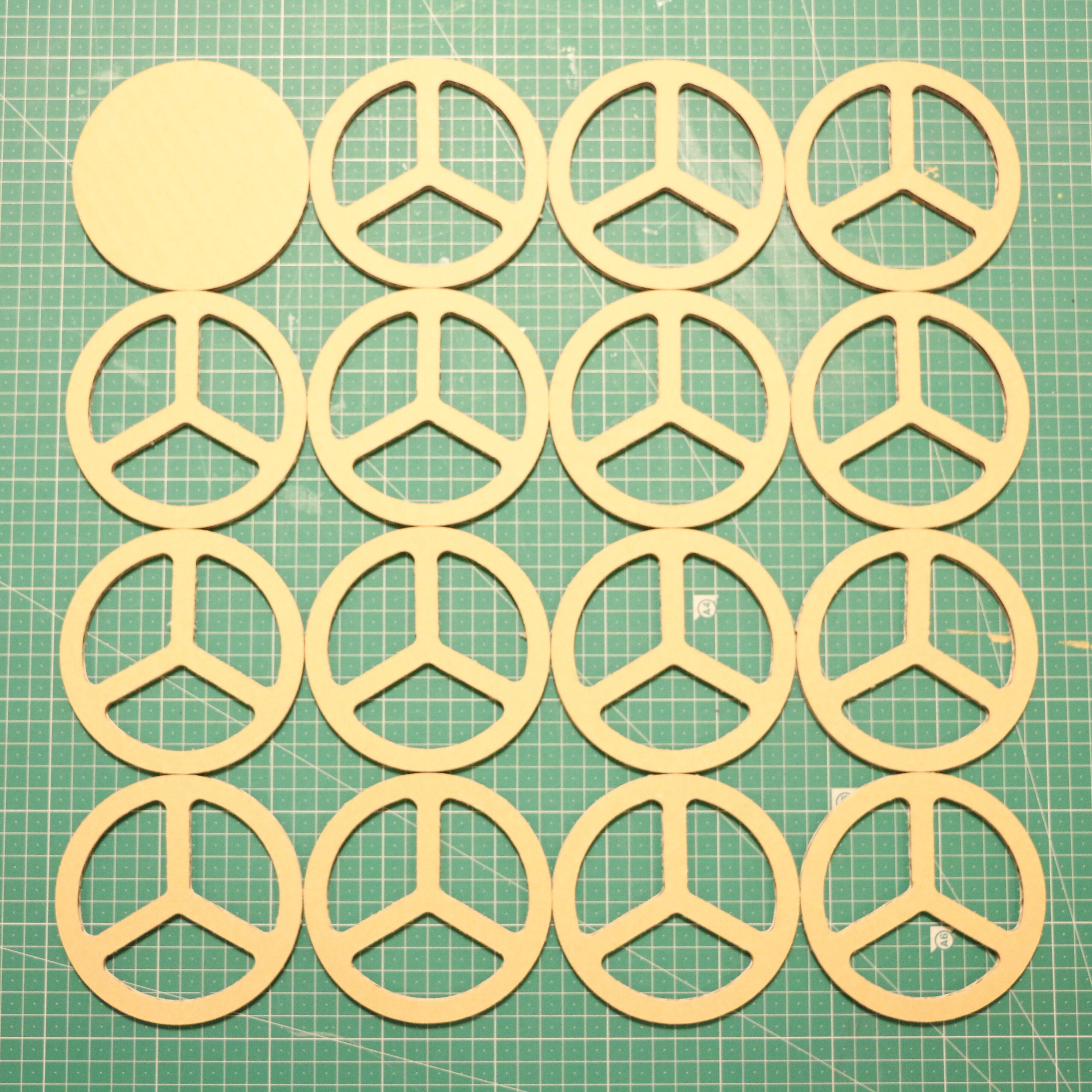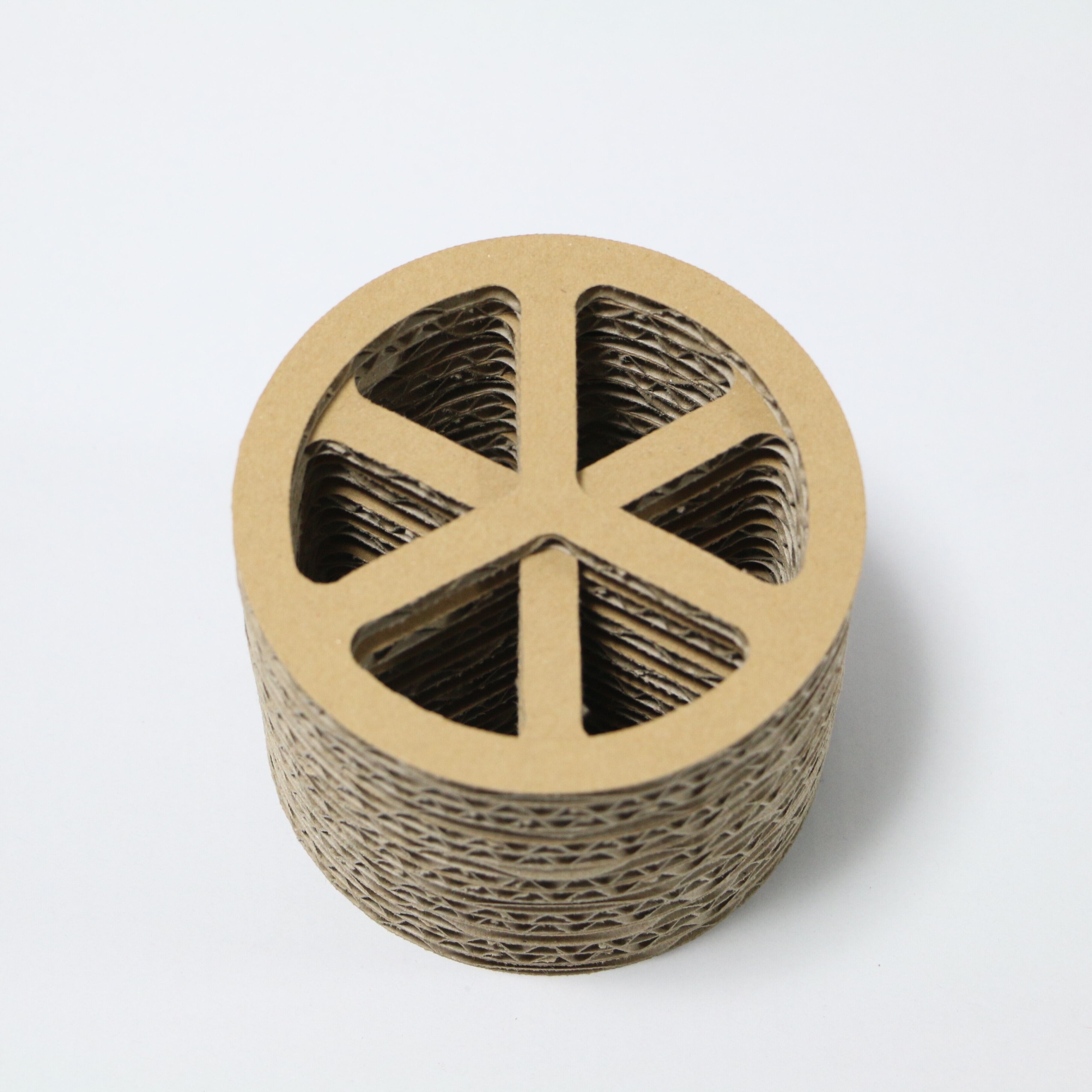 厚さ5㎜のダンボールパーツを接着して積み上げるペン立てキット。