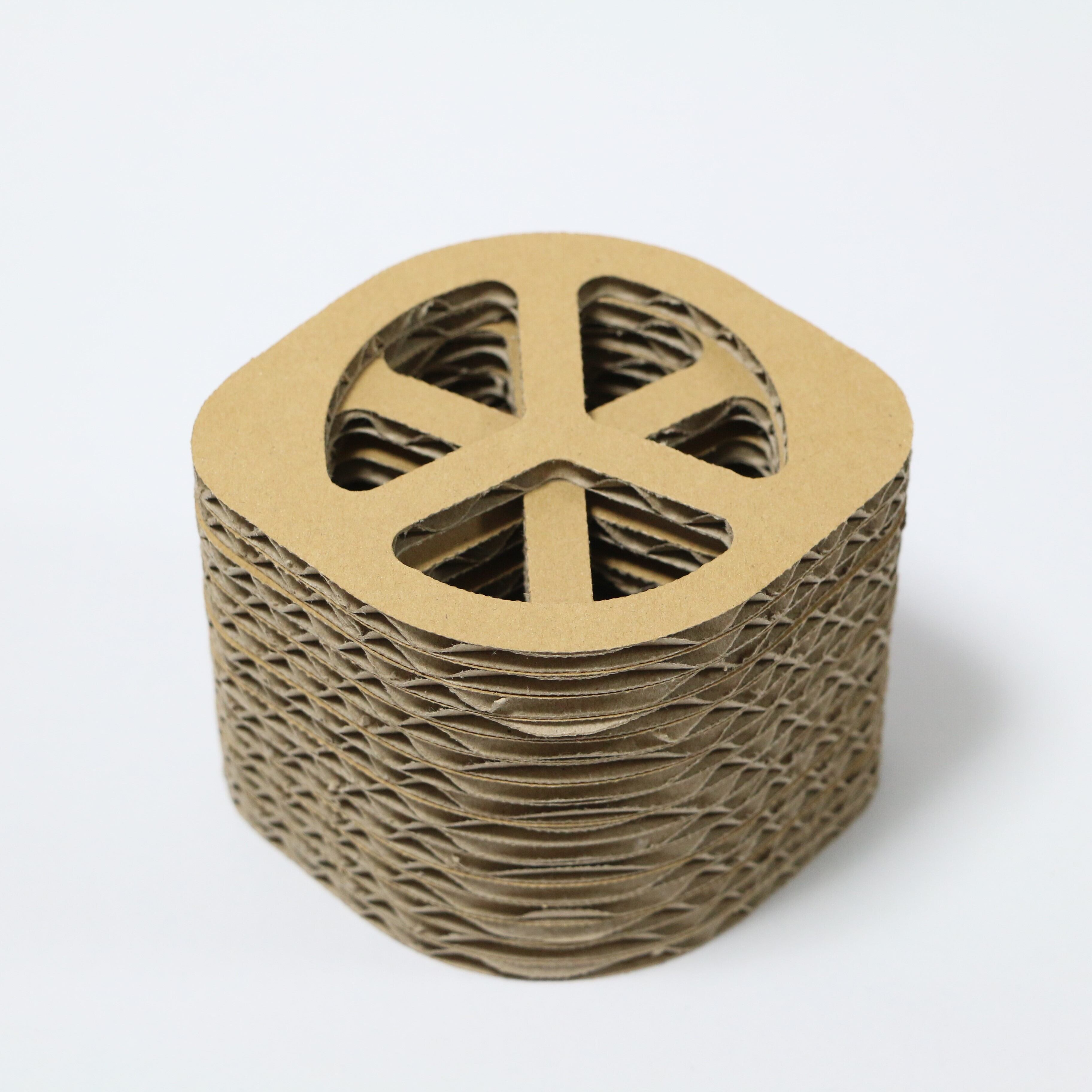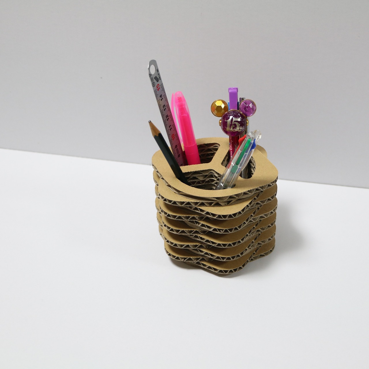 厚さ5㎜のダンボールパーツを接着して積み上げるペン立てキット。