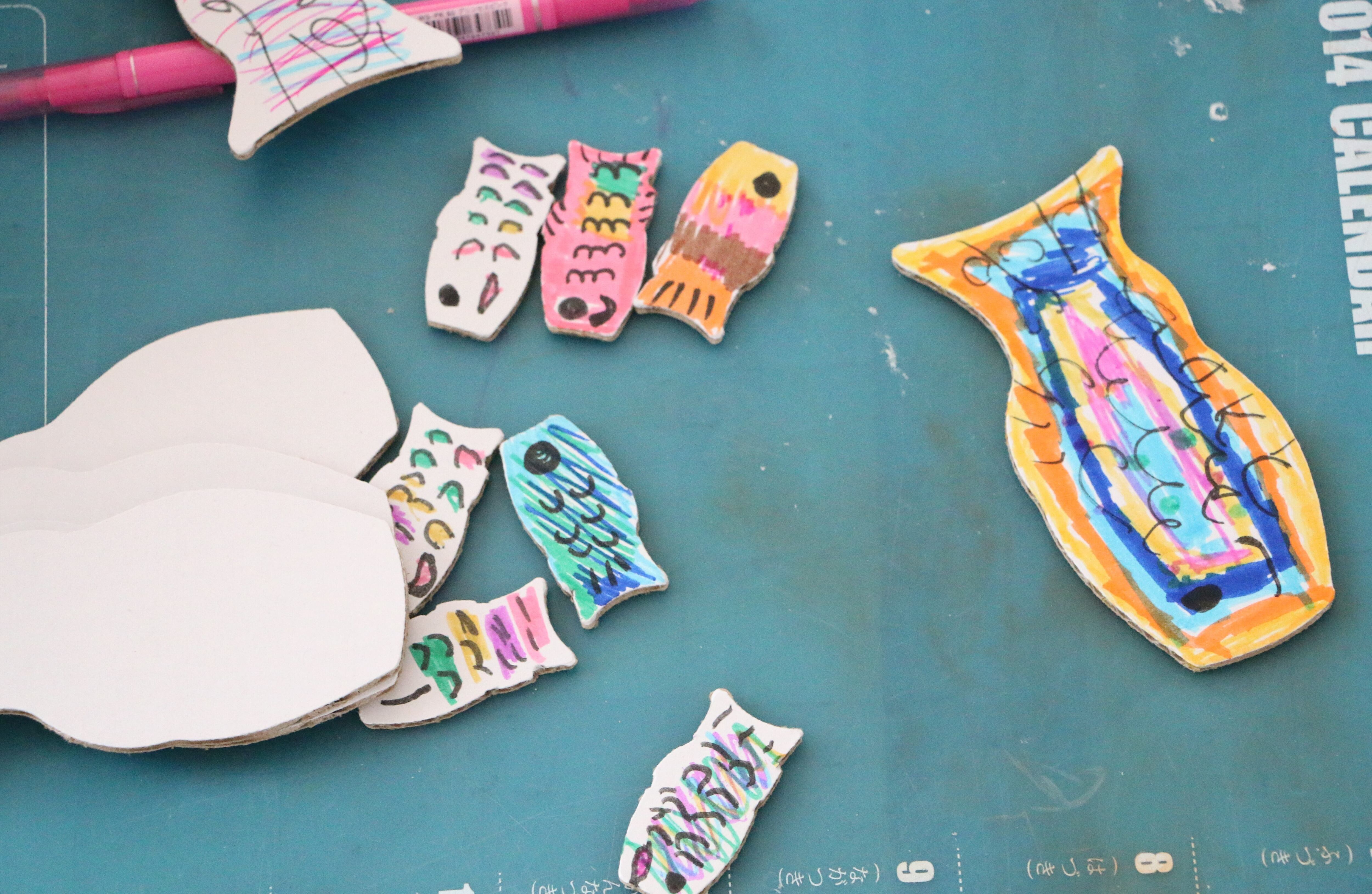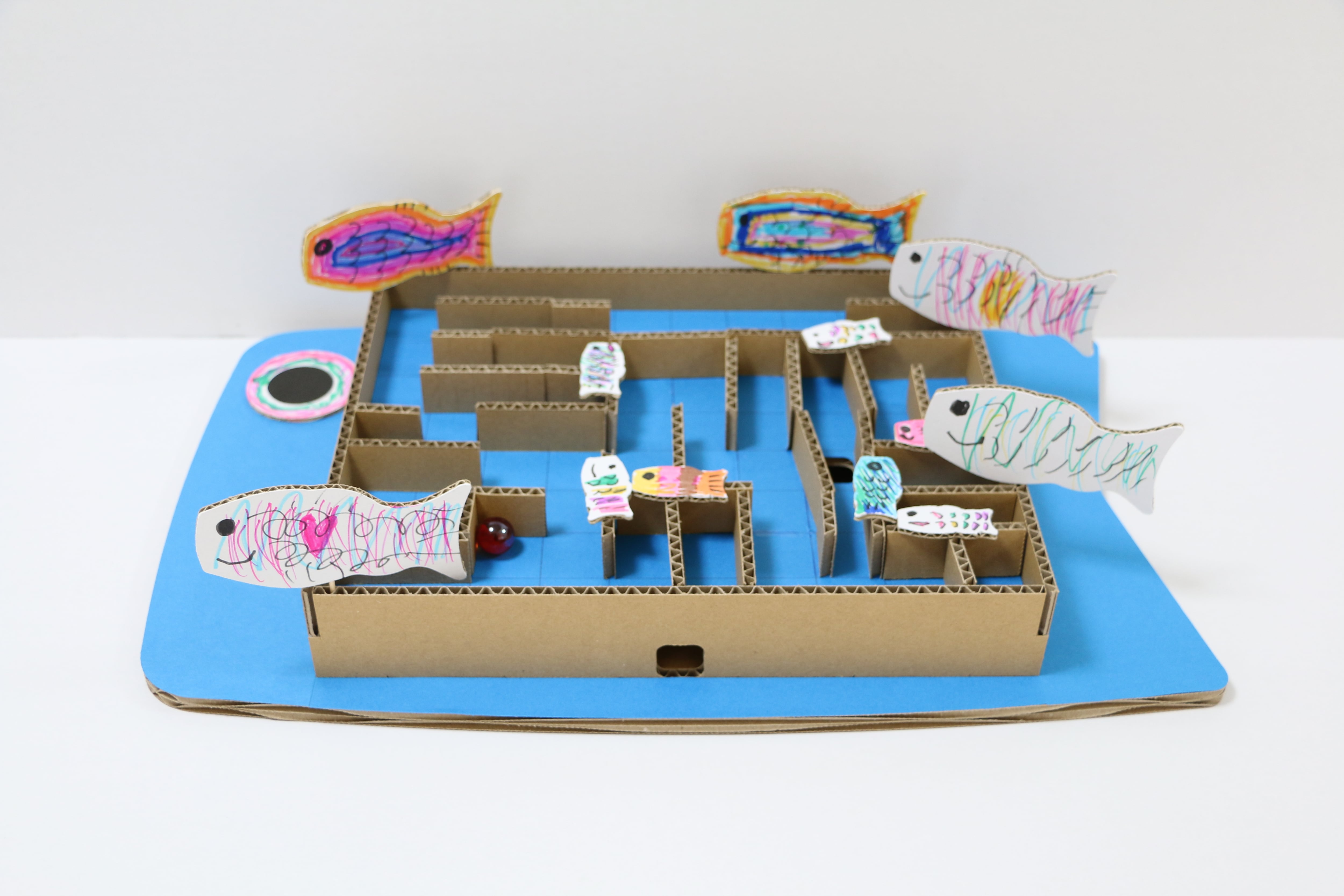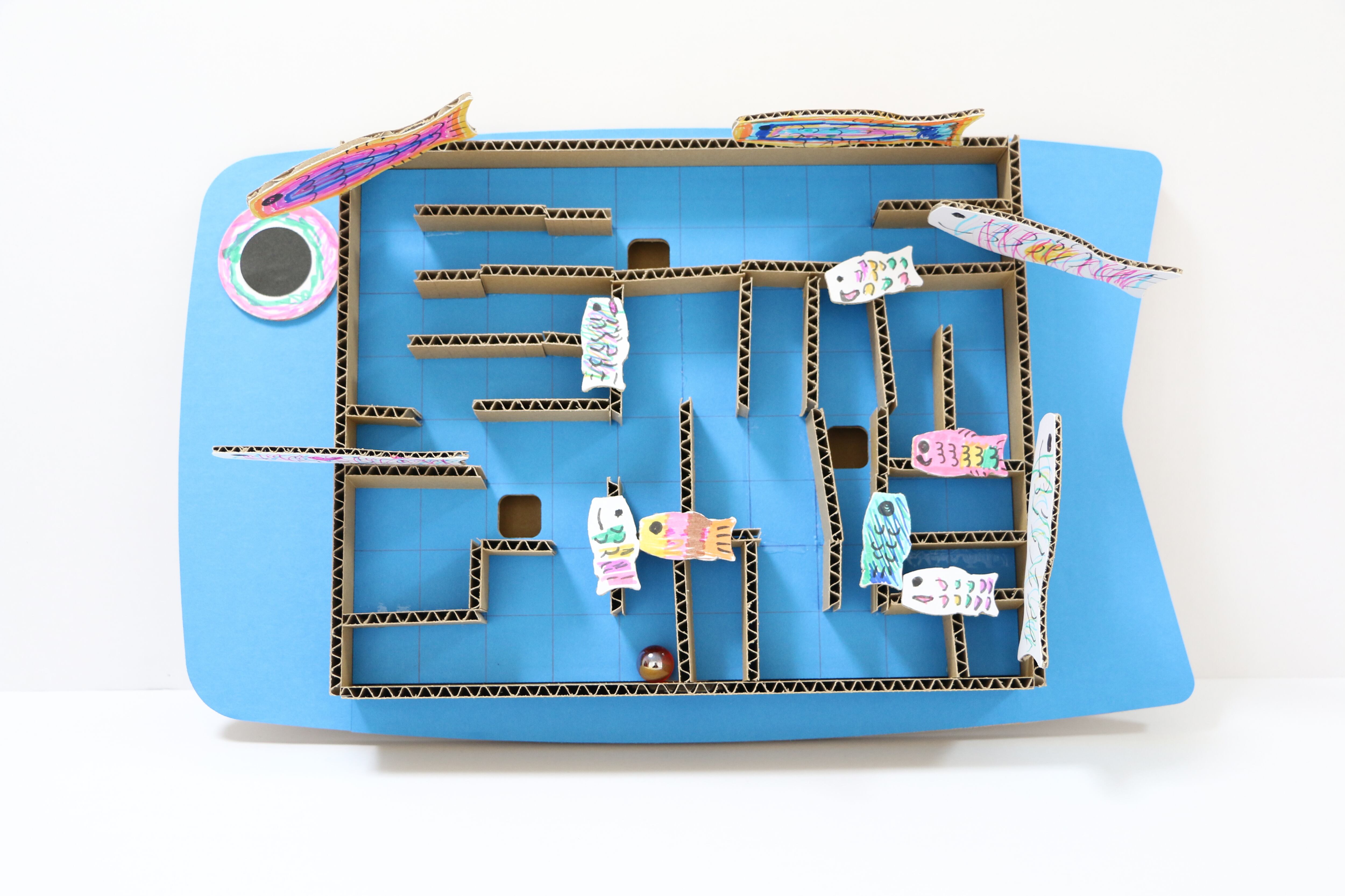 ビー玉コロコロ迷路ダンボール工作キット(鯉のぼり)・落とし穴が楽しい迷路