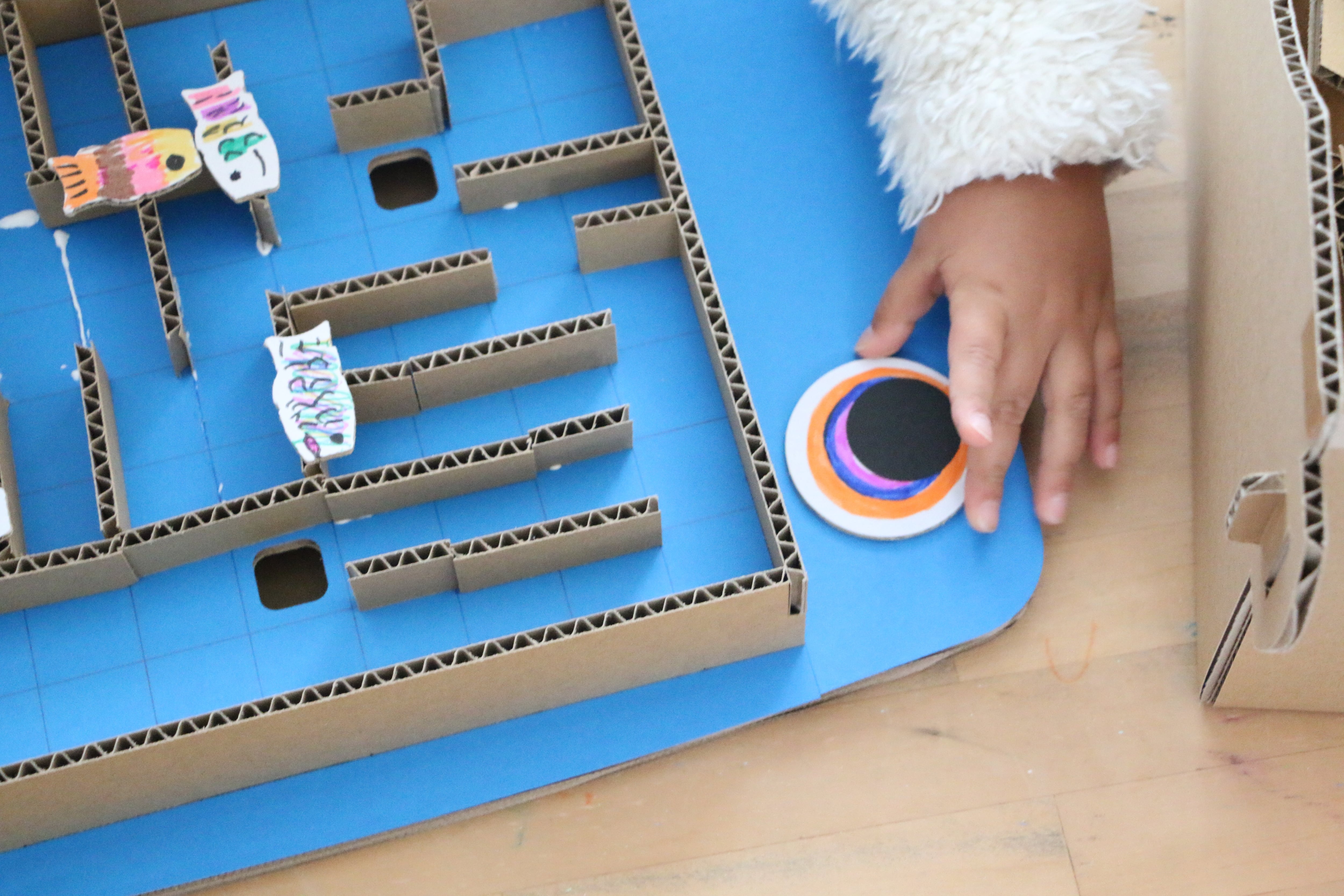 お家の中で楽しい工作をしてみてはいかがでしょう。こどもの日に向けて、ビー玉コロコロ迷路キット・鯉のぼりバージョンがオススメです。迷路基盤に壁(ダンボールパーツ)を立て、ビー玉を転がすコースを作るビー玉コロコロ迷路キット。壁パーツに接着剤をつけて基盤の罫線に沿って貼り付けオリジナルコースを作ろう!スタートからゴールまで落とし穴に落ちずたどり着けるか⁉️レッツゴー!