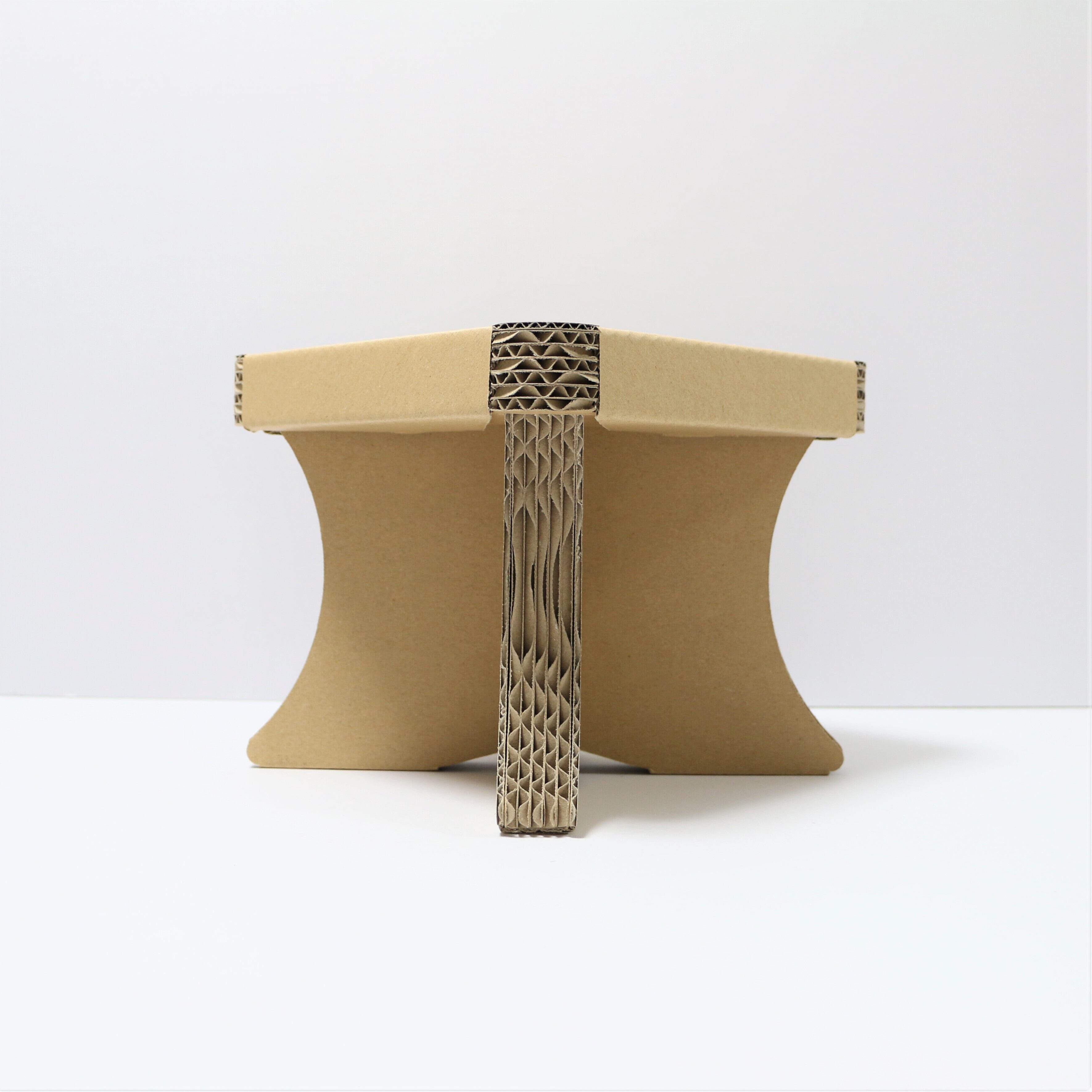 ダンボール子供スツール簡単組み立て式・CB子供チェア茶はダンボールを何層にも貼り合わせて作られています。素材がダンボールなので軽量で持ち運びに便利、そして何層にも貼り合わせてあるので丈夫で安定性があります。座面と脚は取り外し簡単なカバータイプになっているので汚れた際には新しい座面カバー・脚カバーに取り換えることができる。