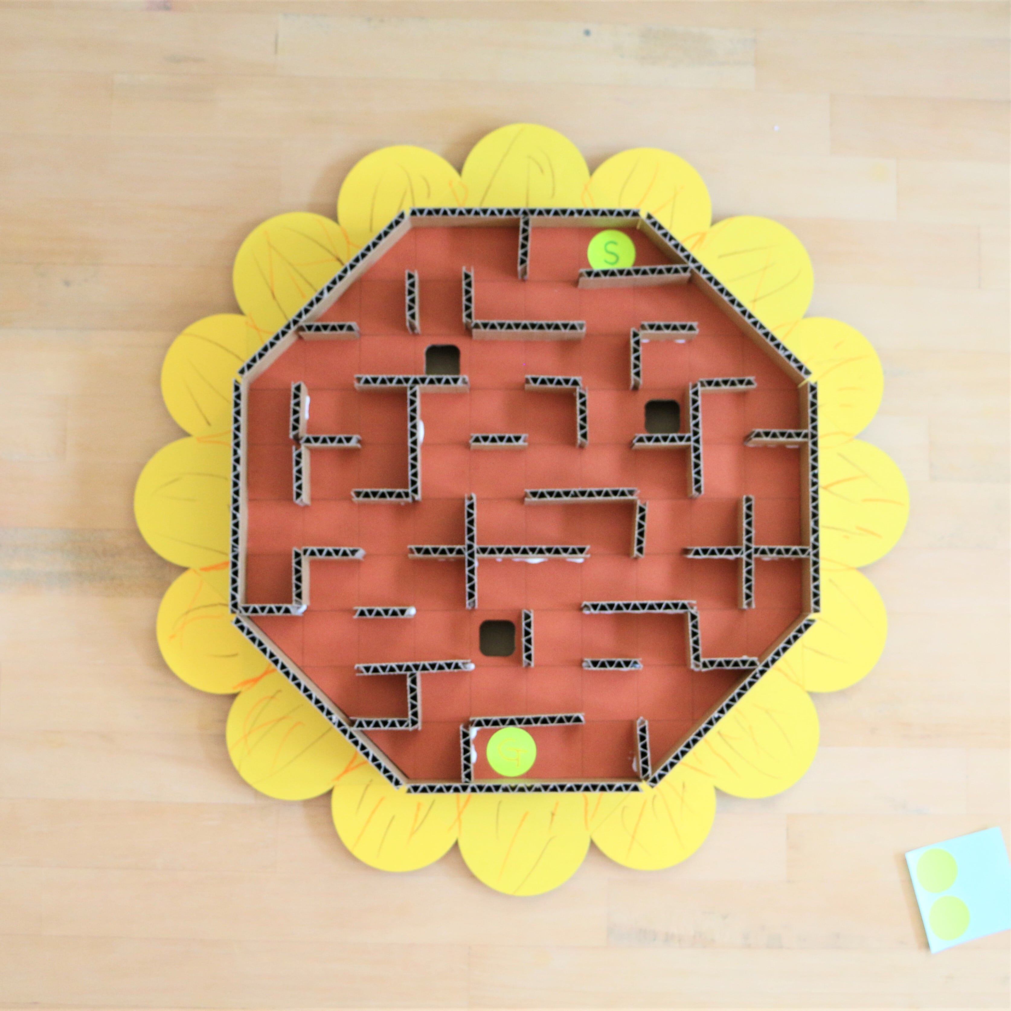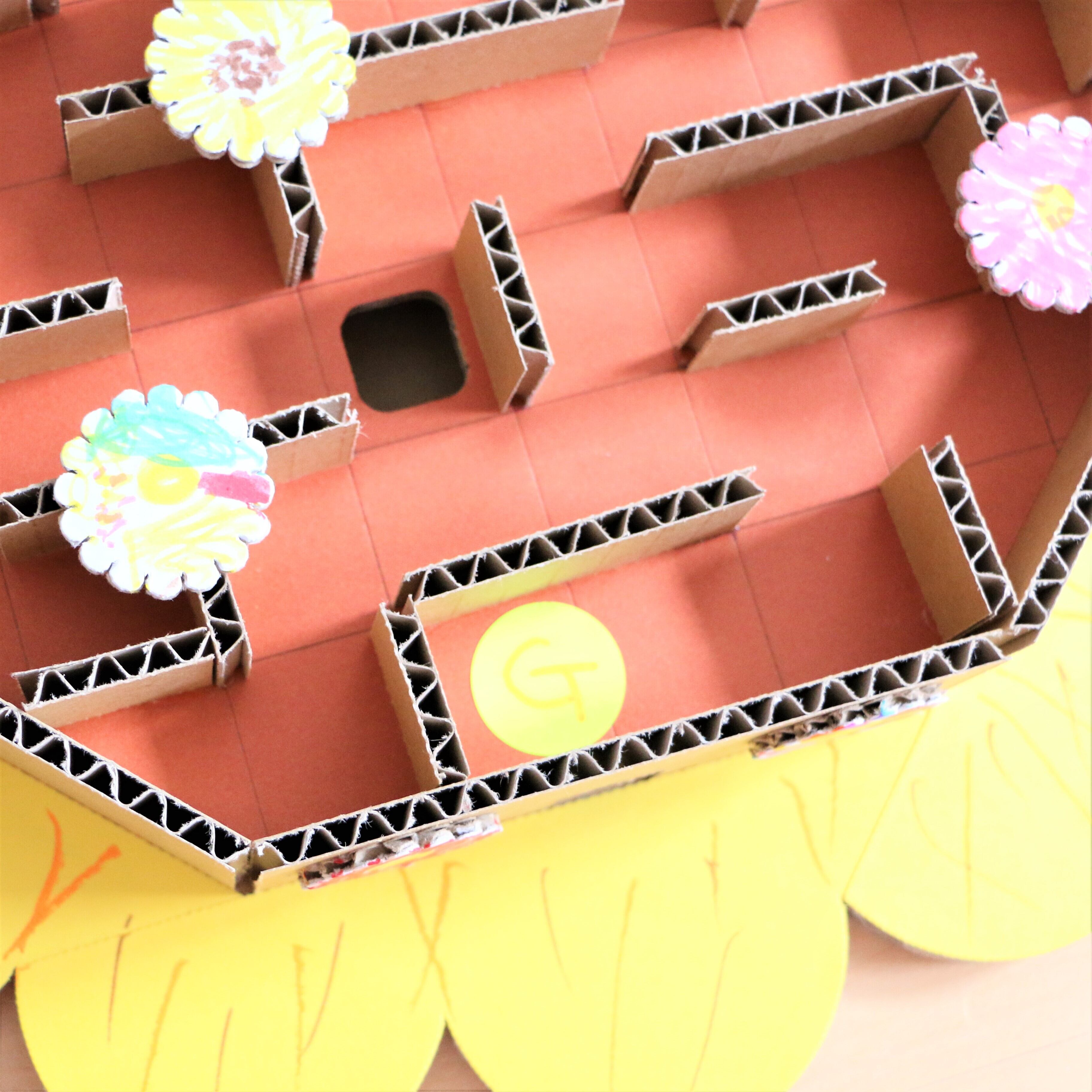 ビー玉コロコロ迷路ダンボール工作キット(ひまわり)・落とし穴が楽しい迷路