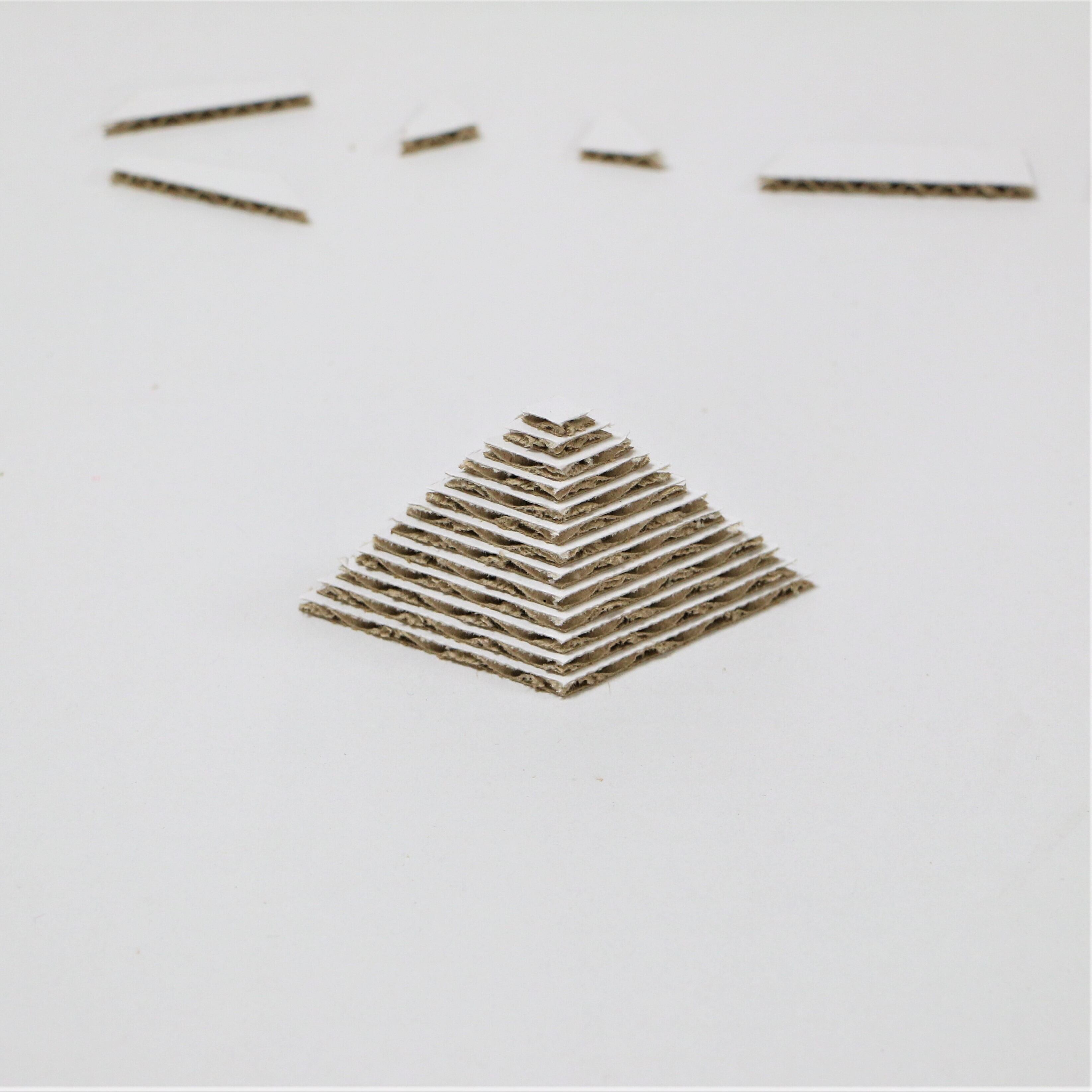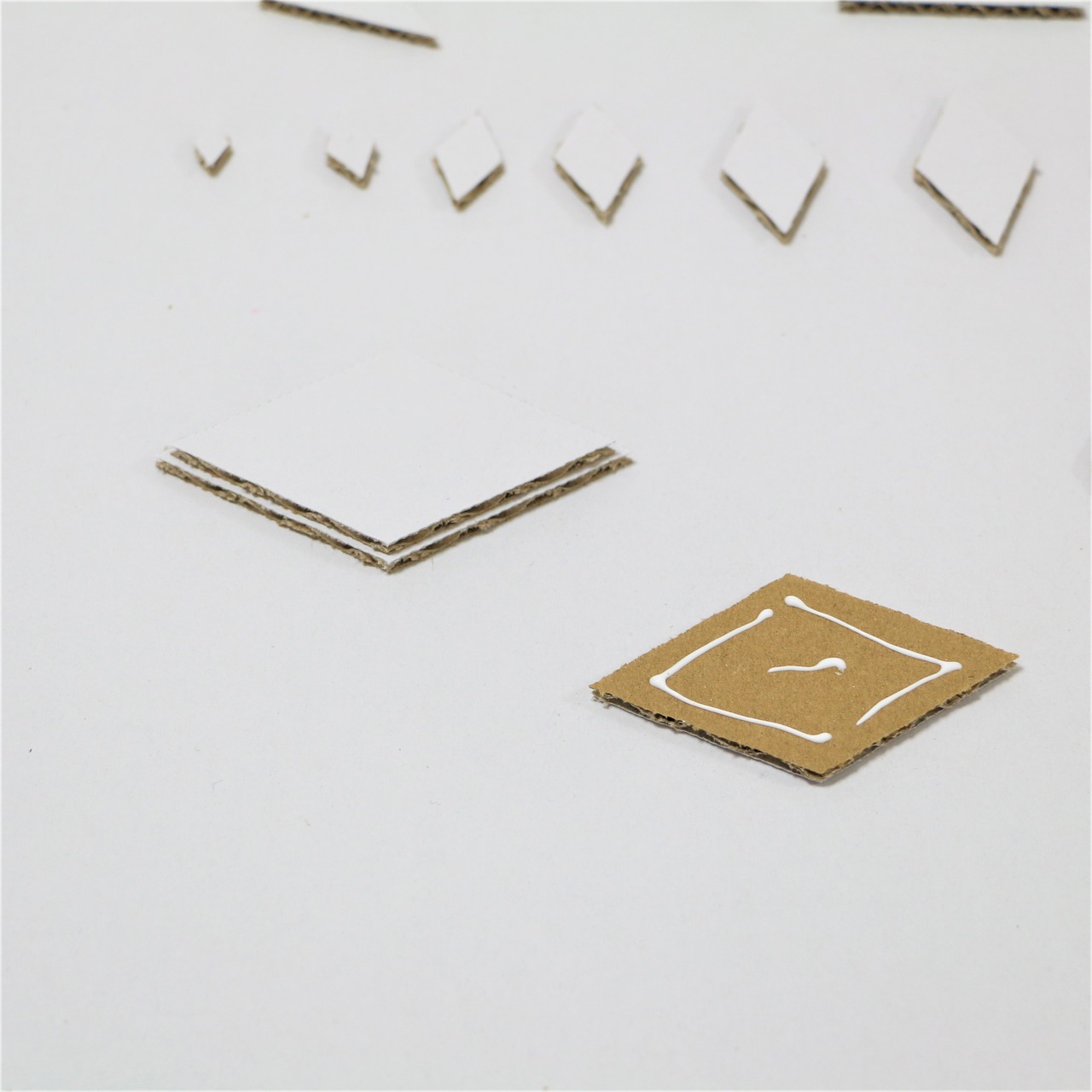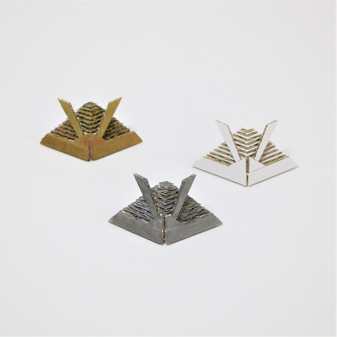 厚さ3㎜のダンボールパーツを貼り合わせて作るミニ兜。