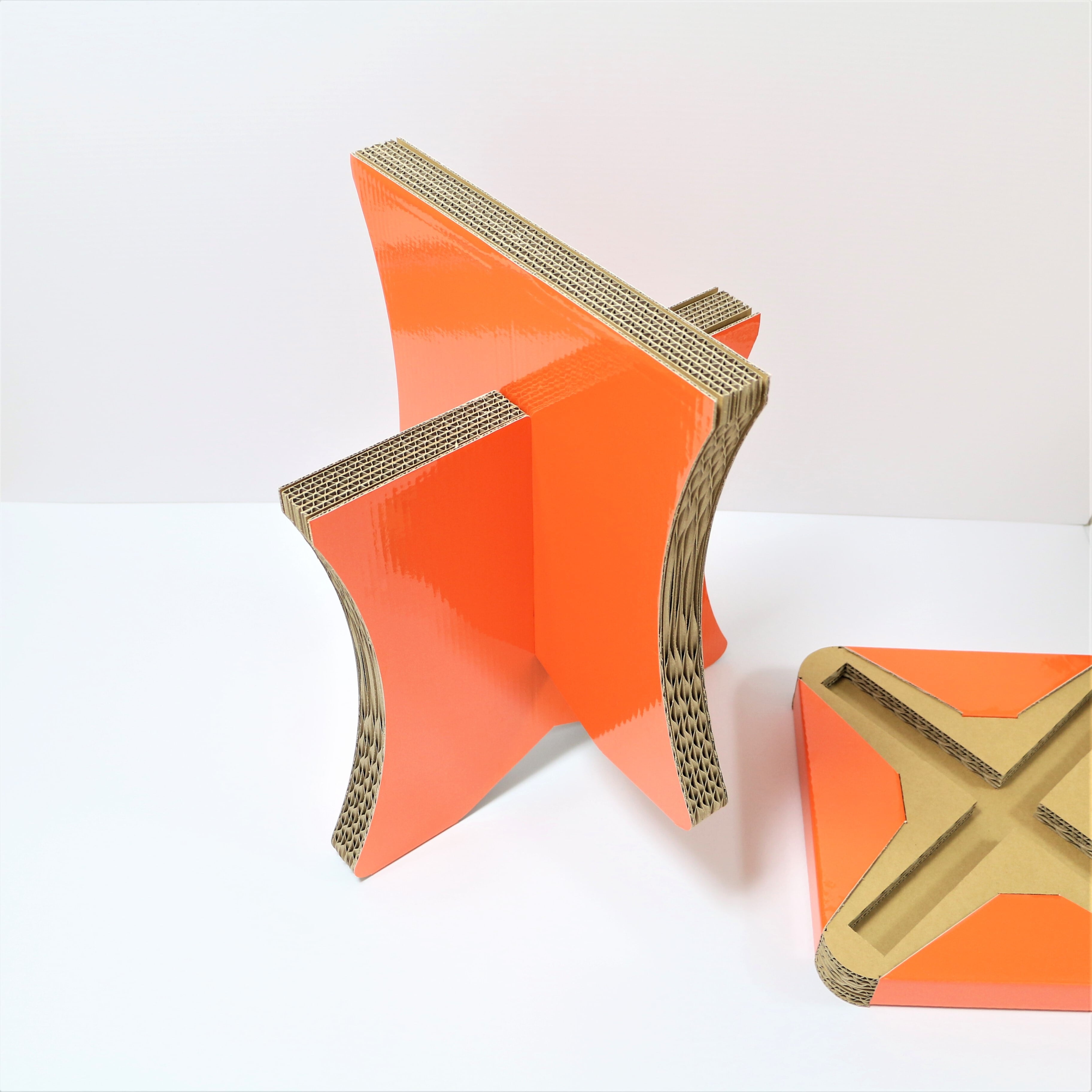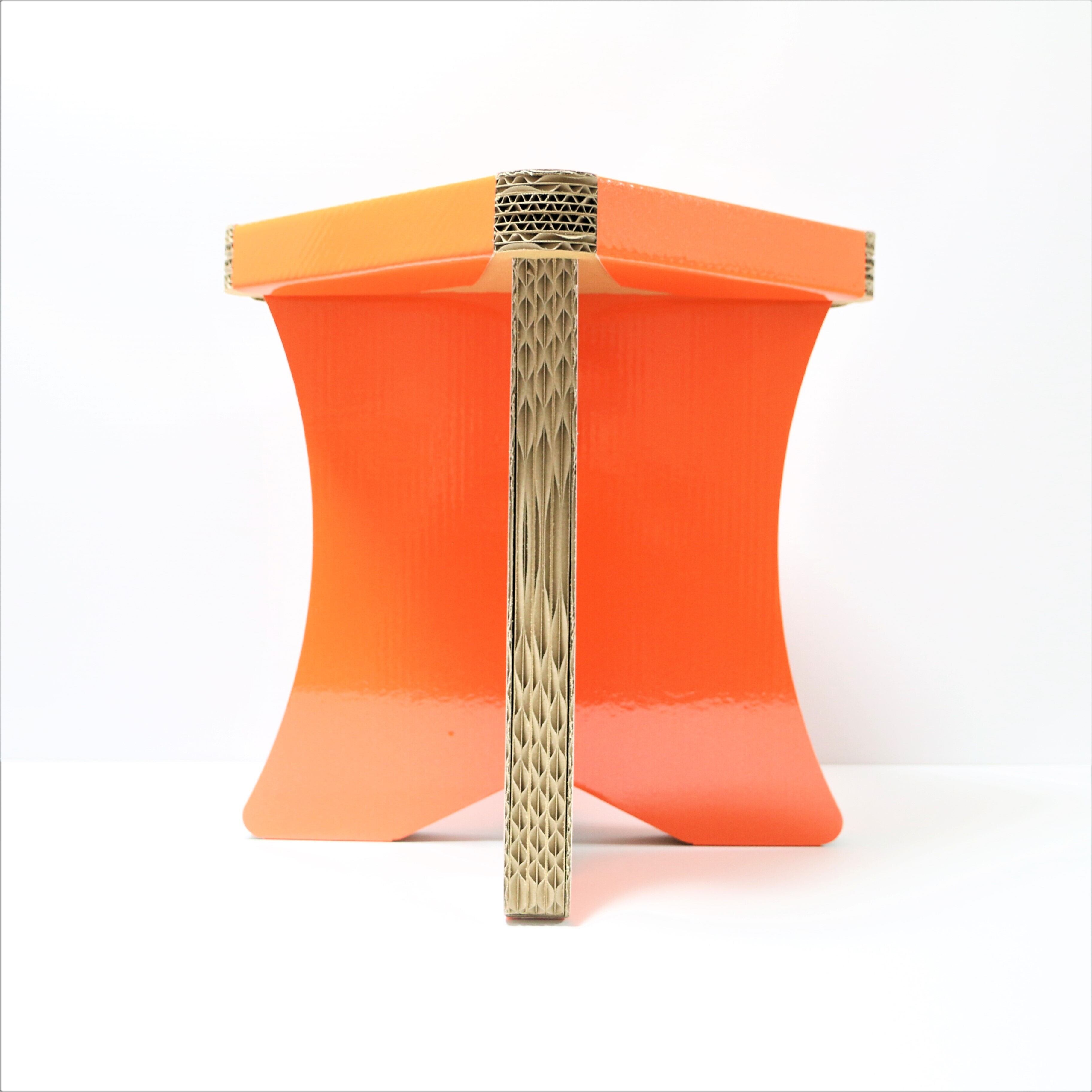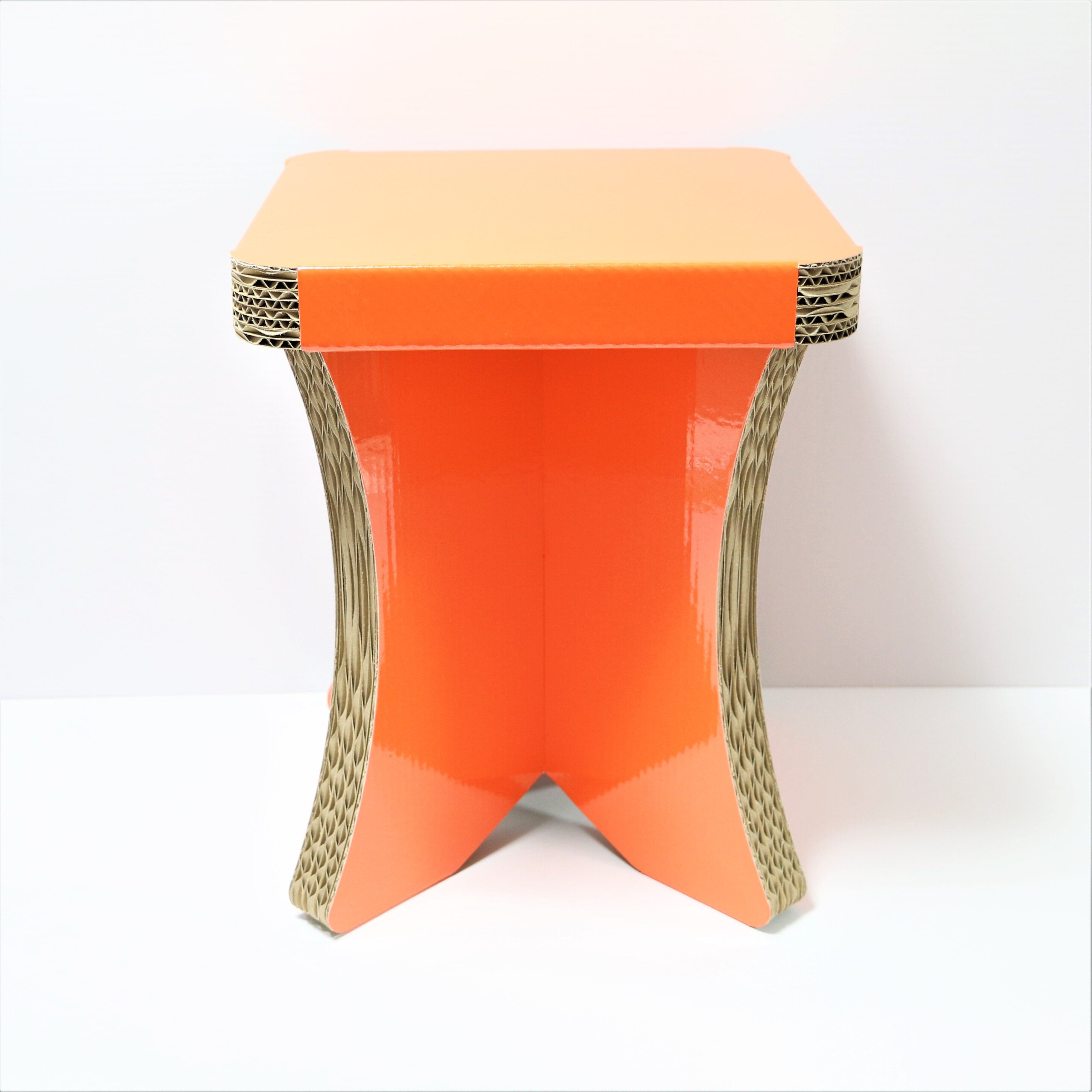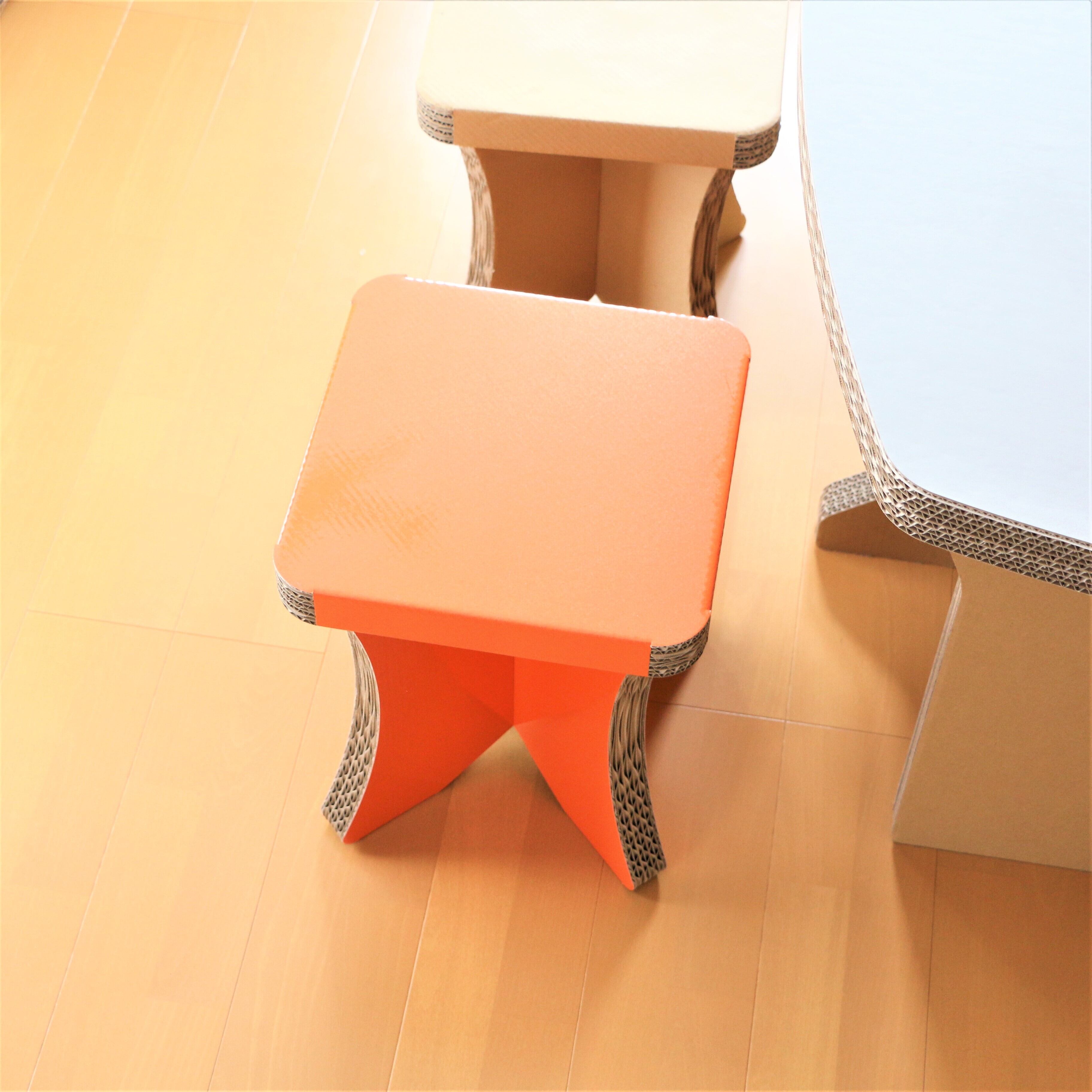 ダンボールスツール簡単組み立て式、CBチェアオレンジ、オシャレなスツール、コンパクト収納チェア