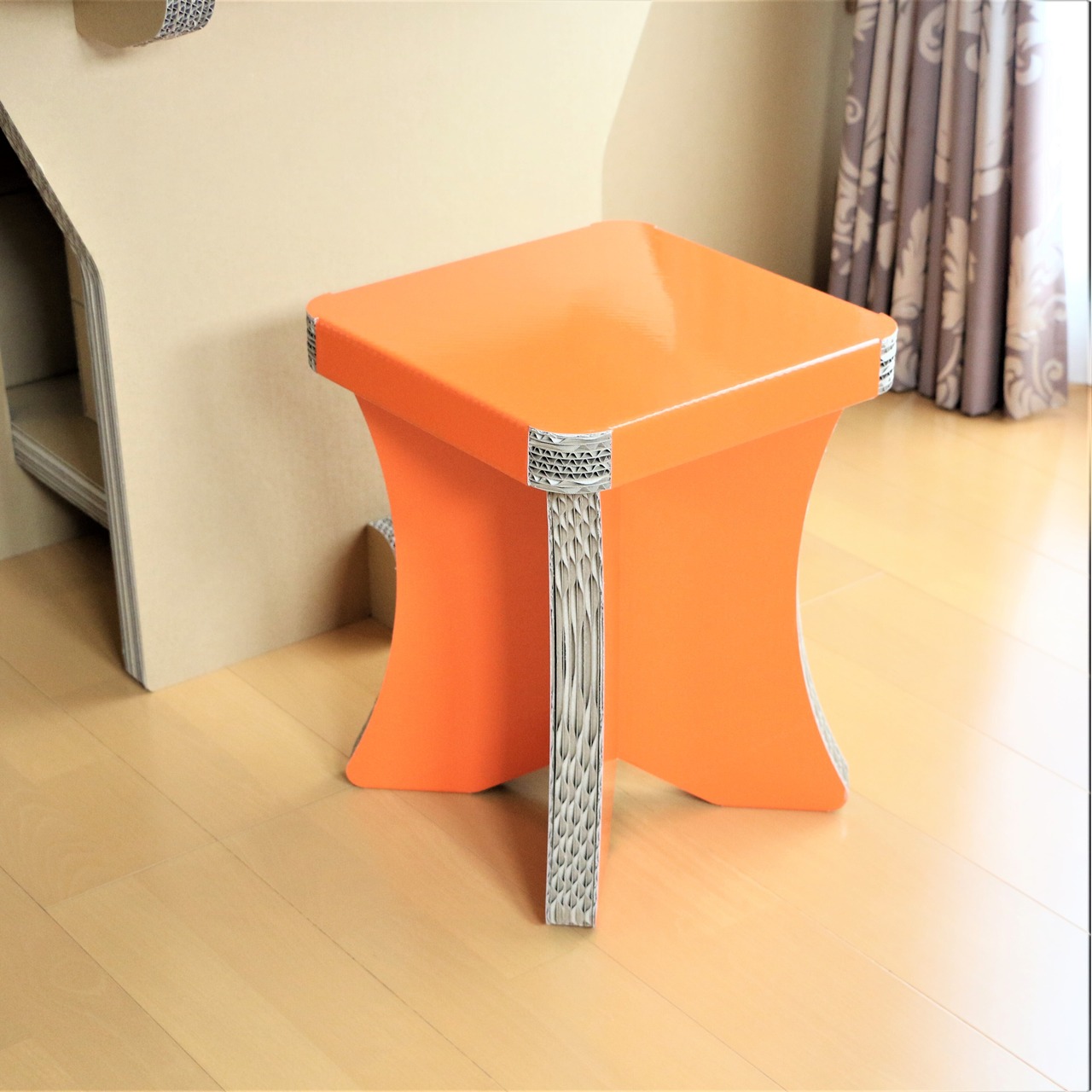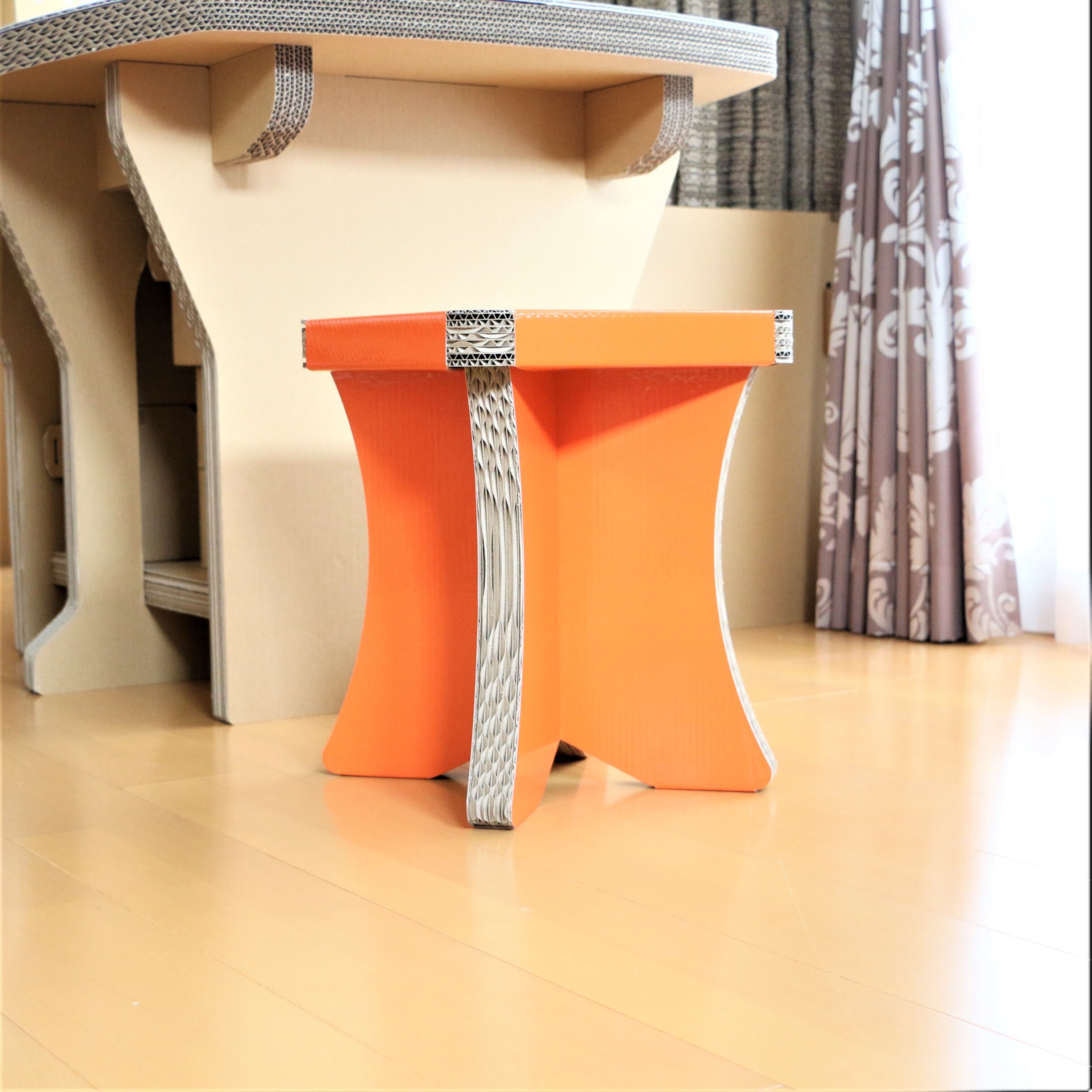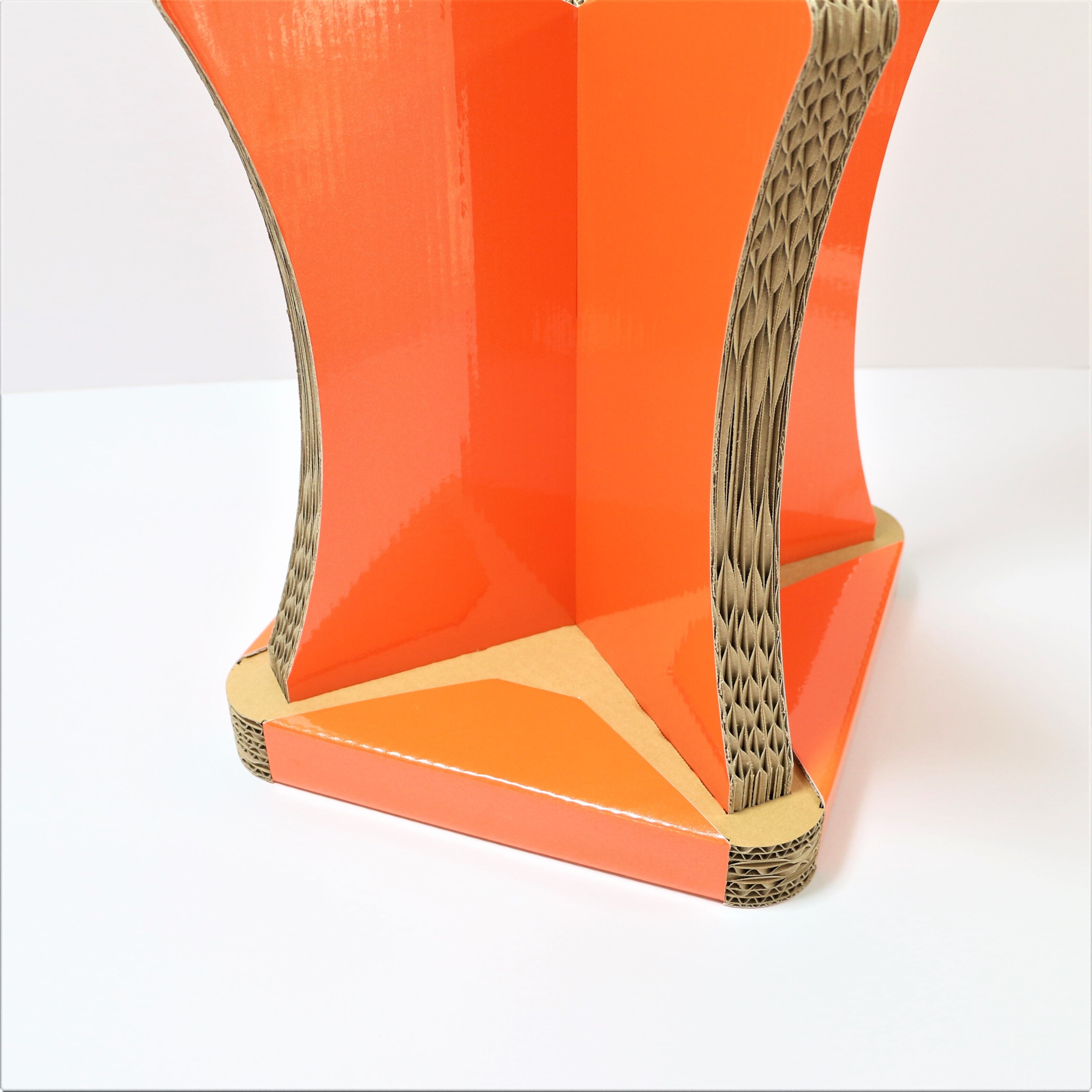 ダンボールスツール簡単組み立て式、CBチェアオレンジ、オシャレなスツール、コンパクト収納チェア