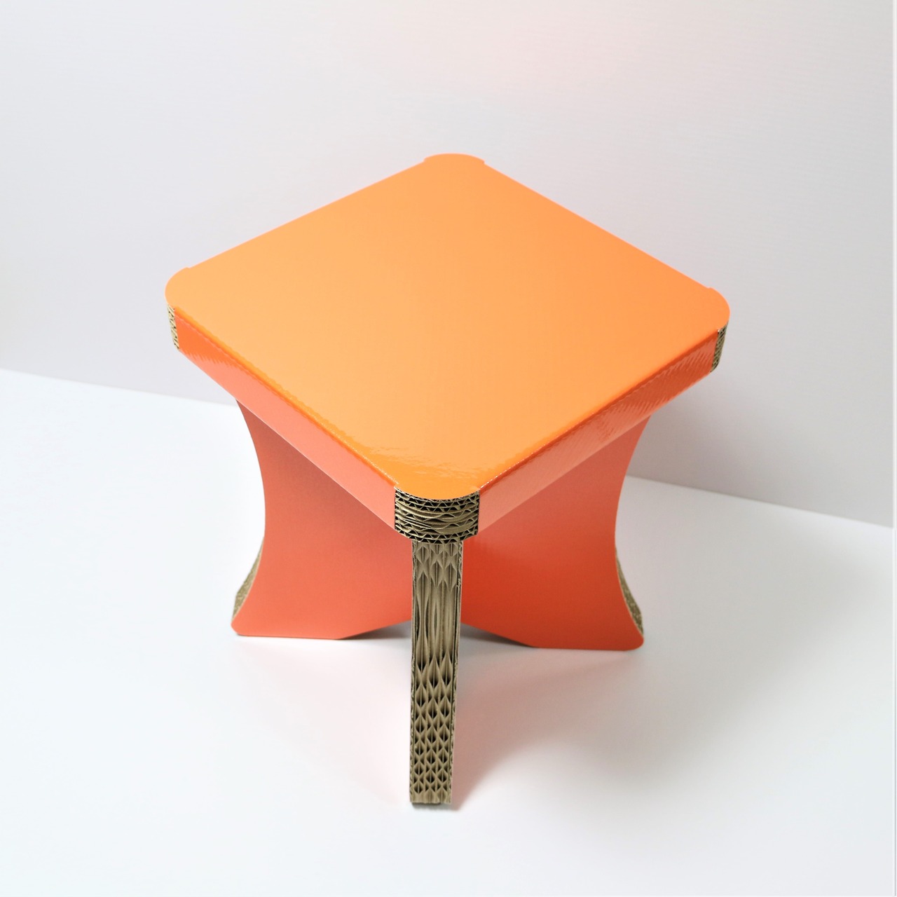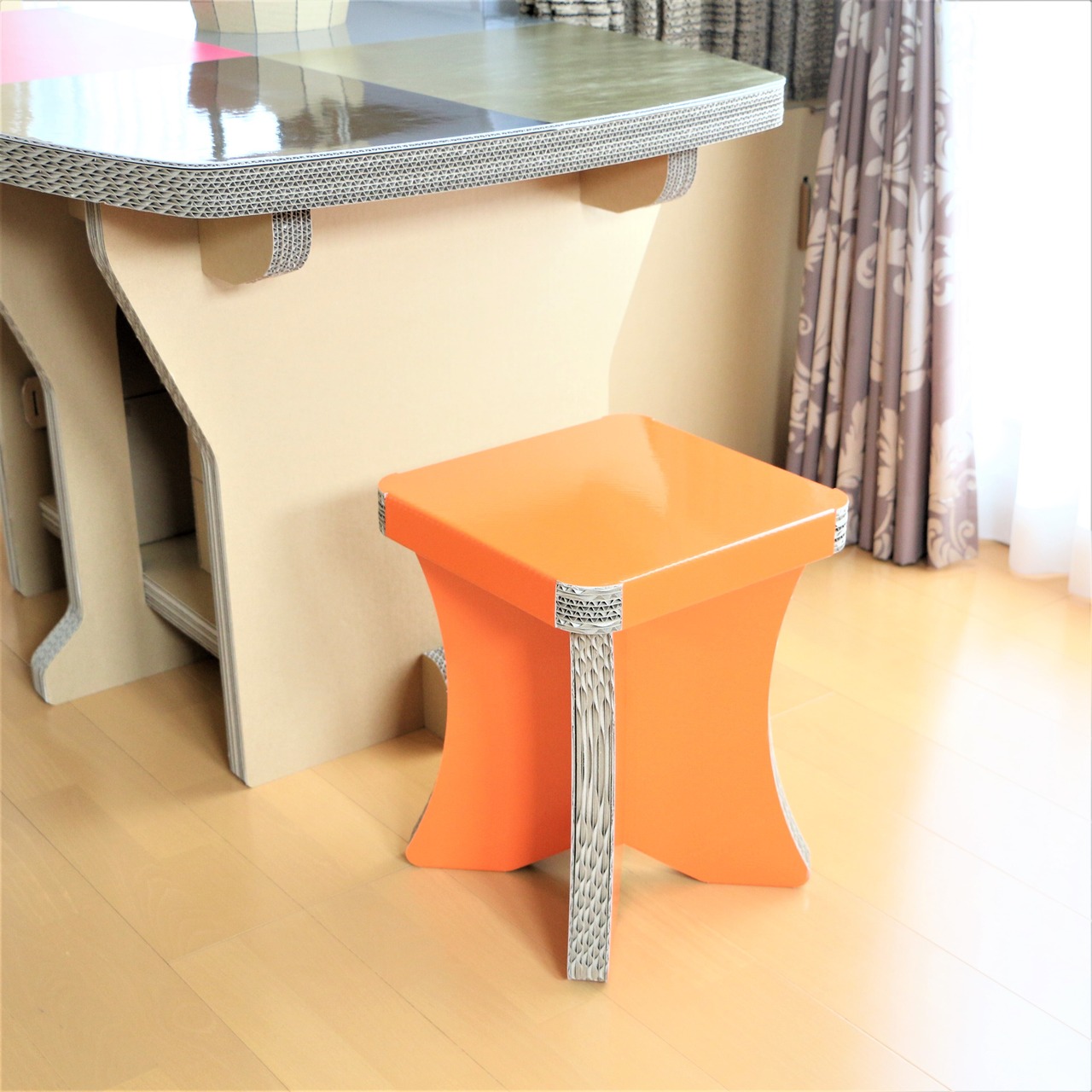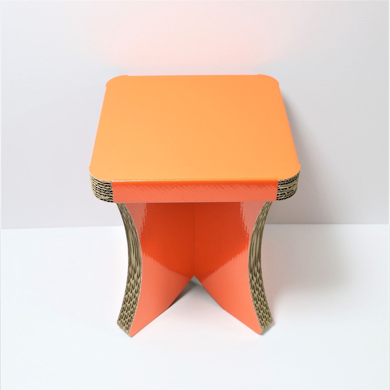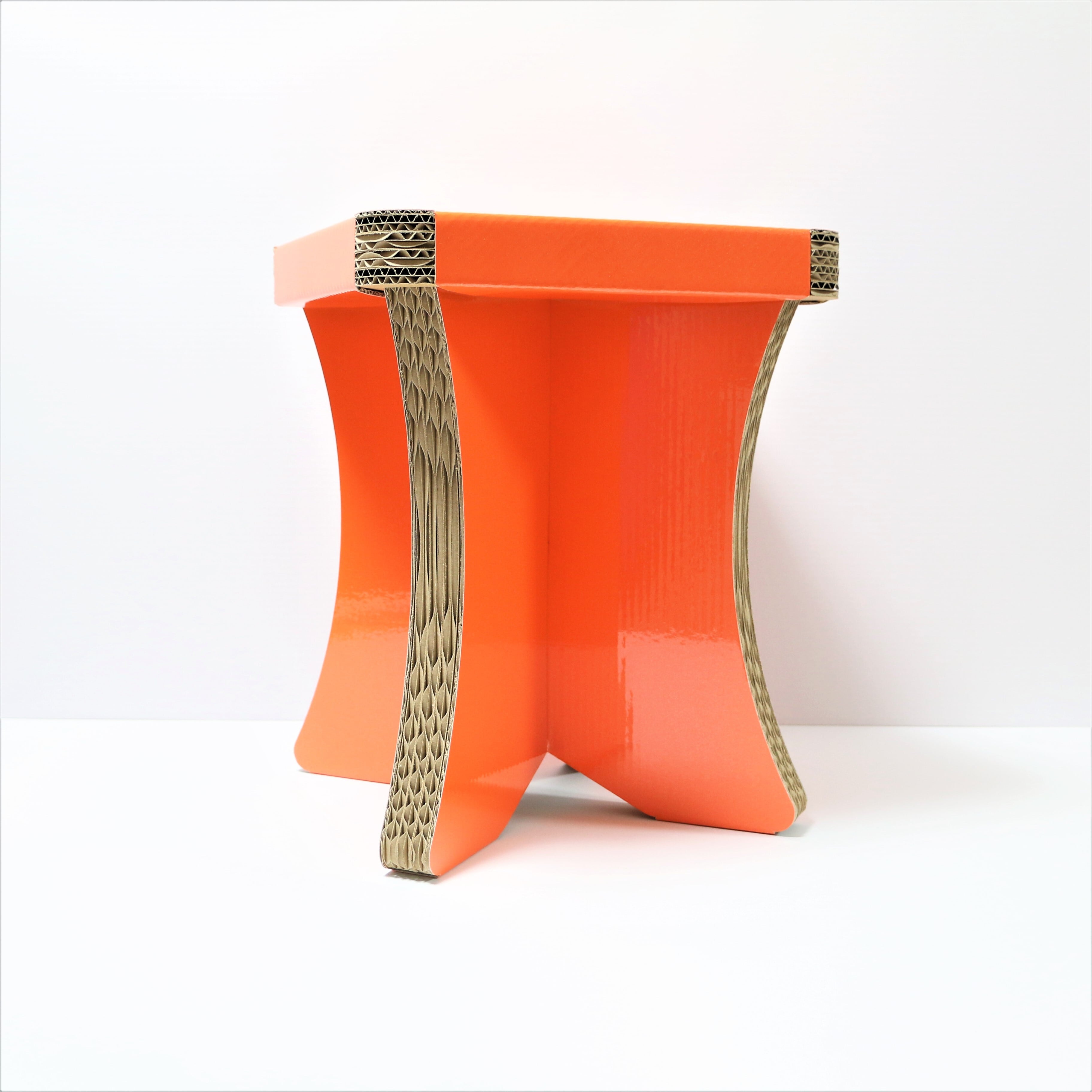 ダンボールスツール簡単組み立て式、CBチェアオレンジ、オシャレなスツール、コンパクト収納チェア