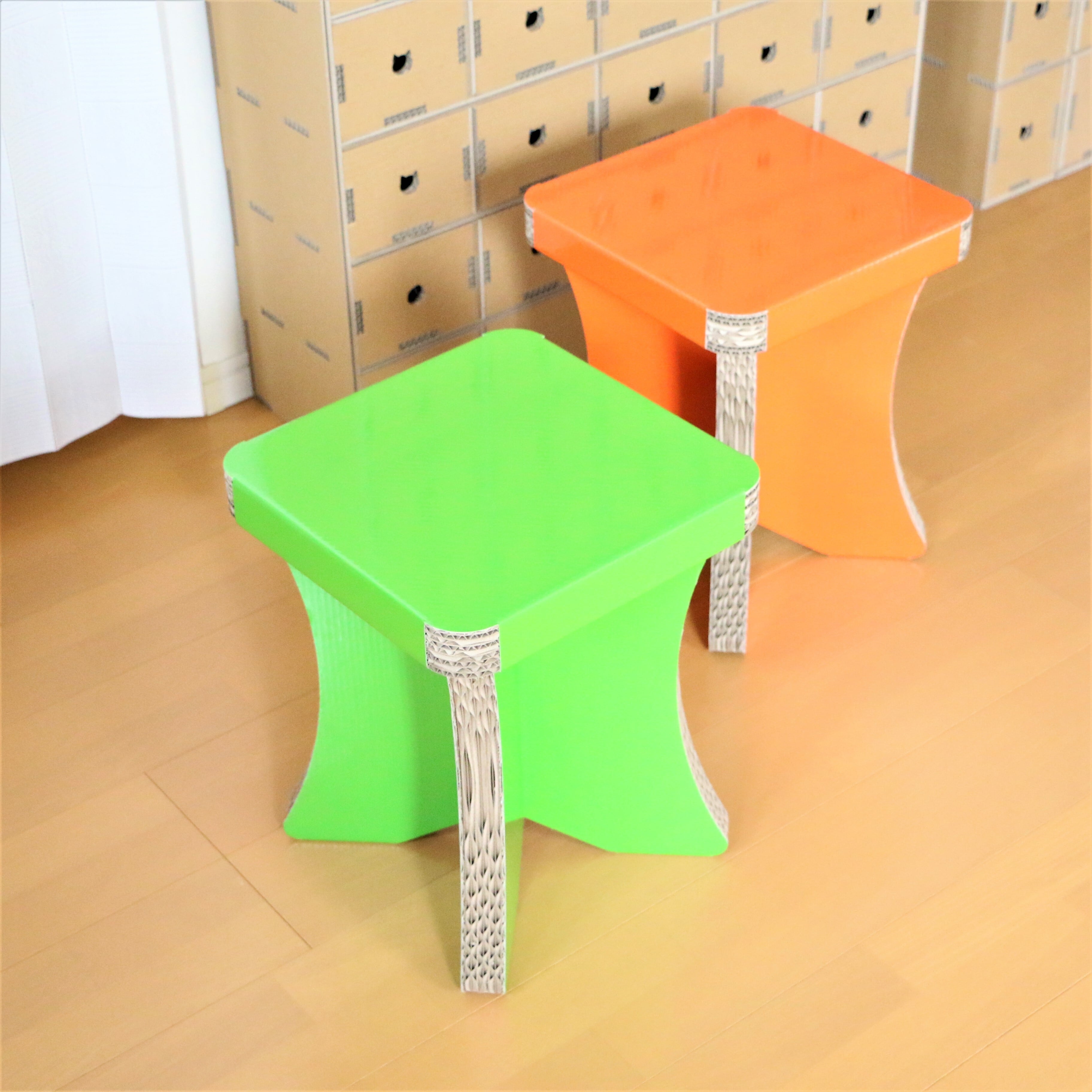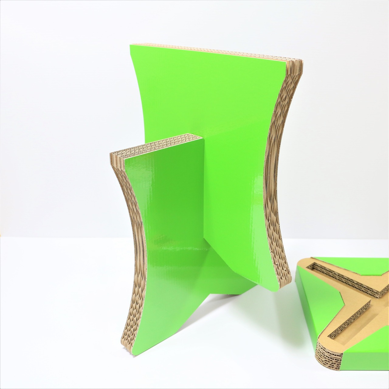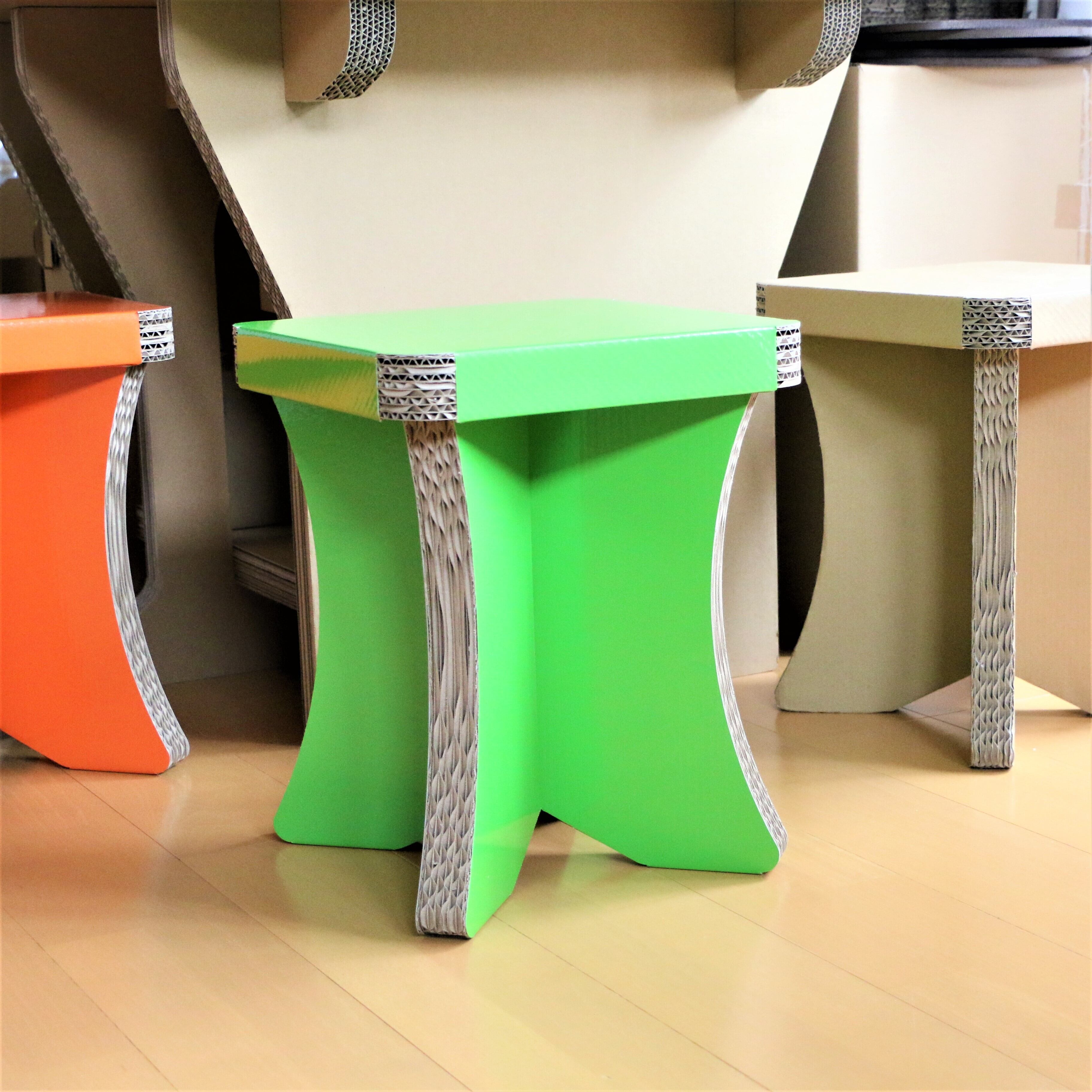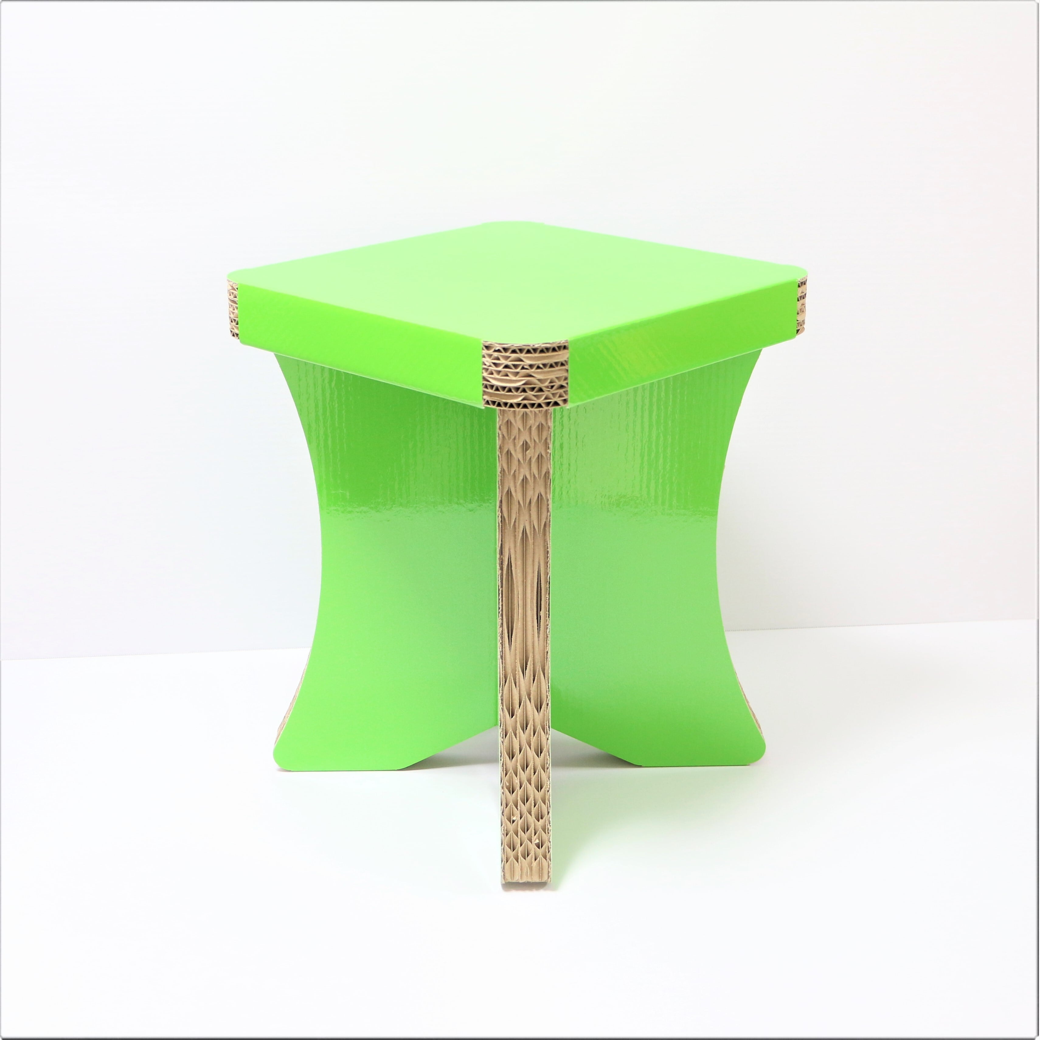 ダンボールスツール簡単組み立て式、CBチェアグリーン、オシャレなスツール、コンパクト収納チェア
