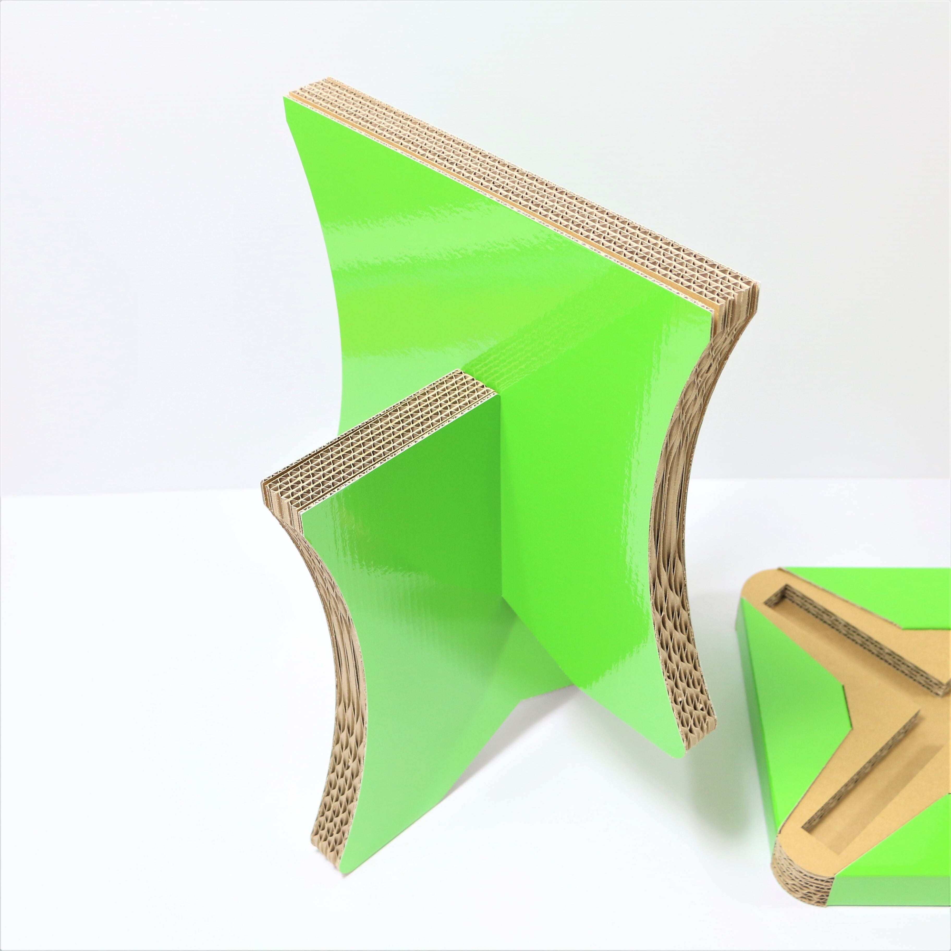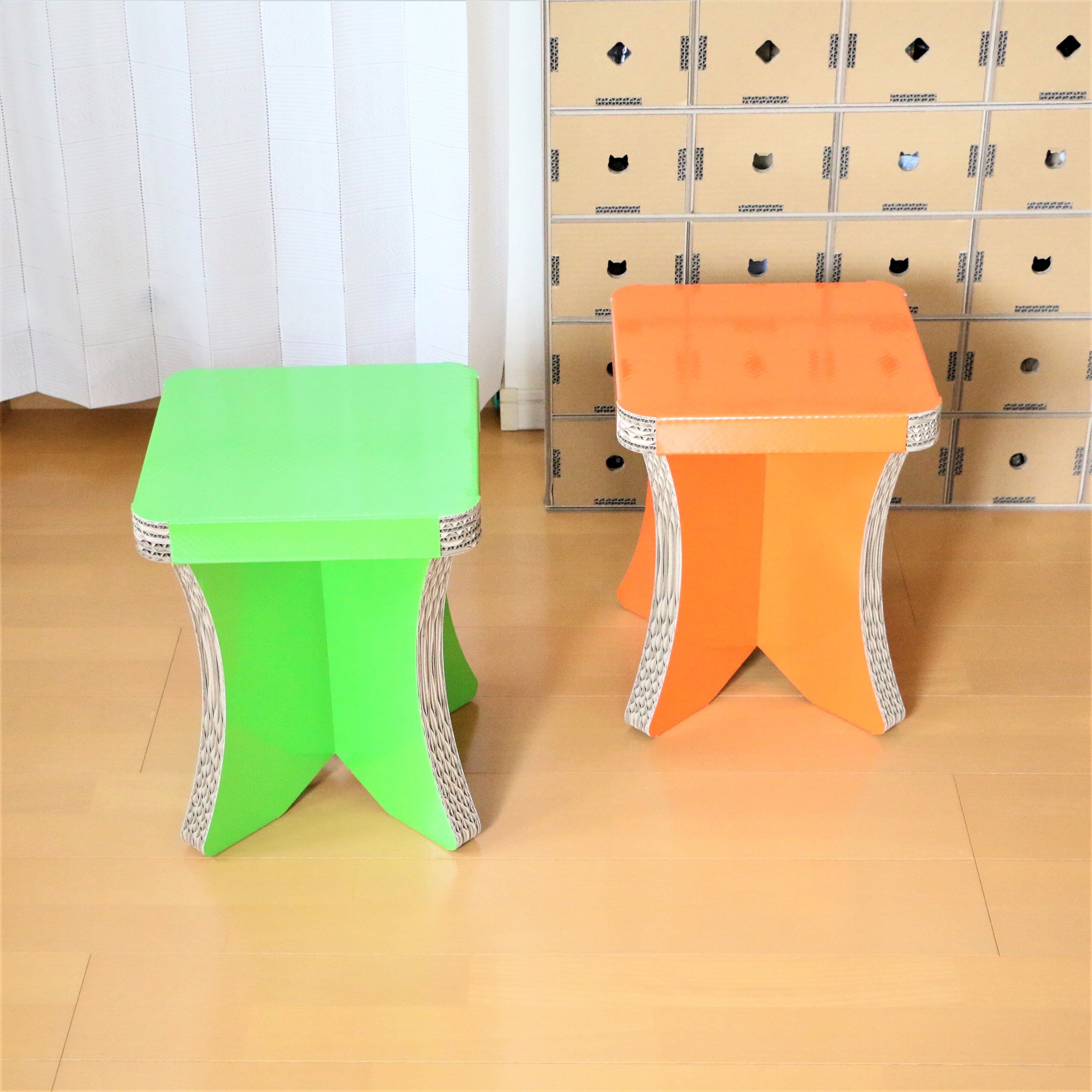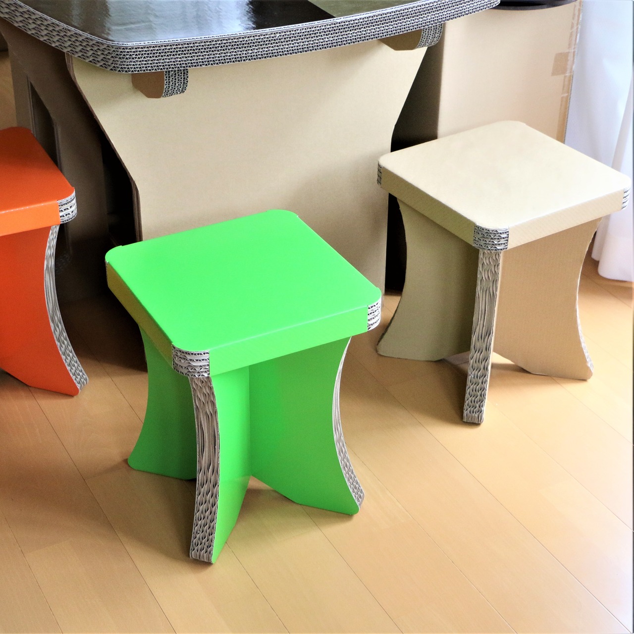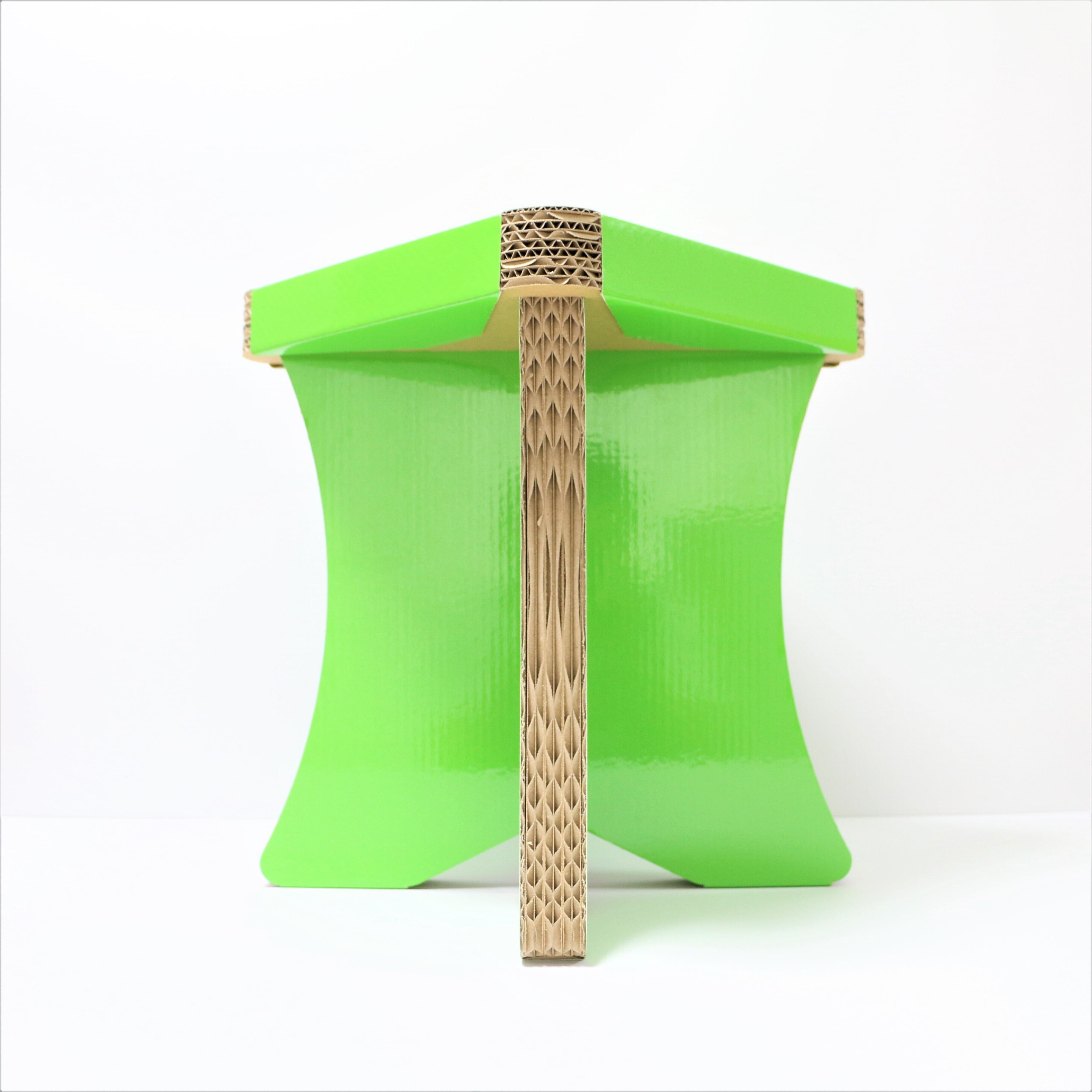 ダンボールスツール簡単組み立て式、CBチェアグリーン、オシャレなスツール、コンパクト収納チェア