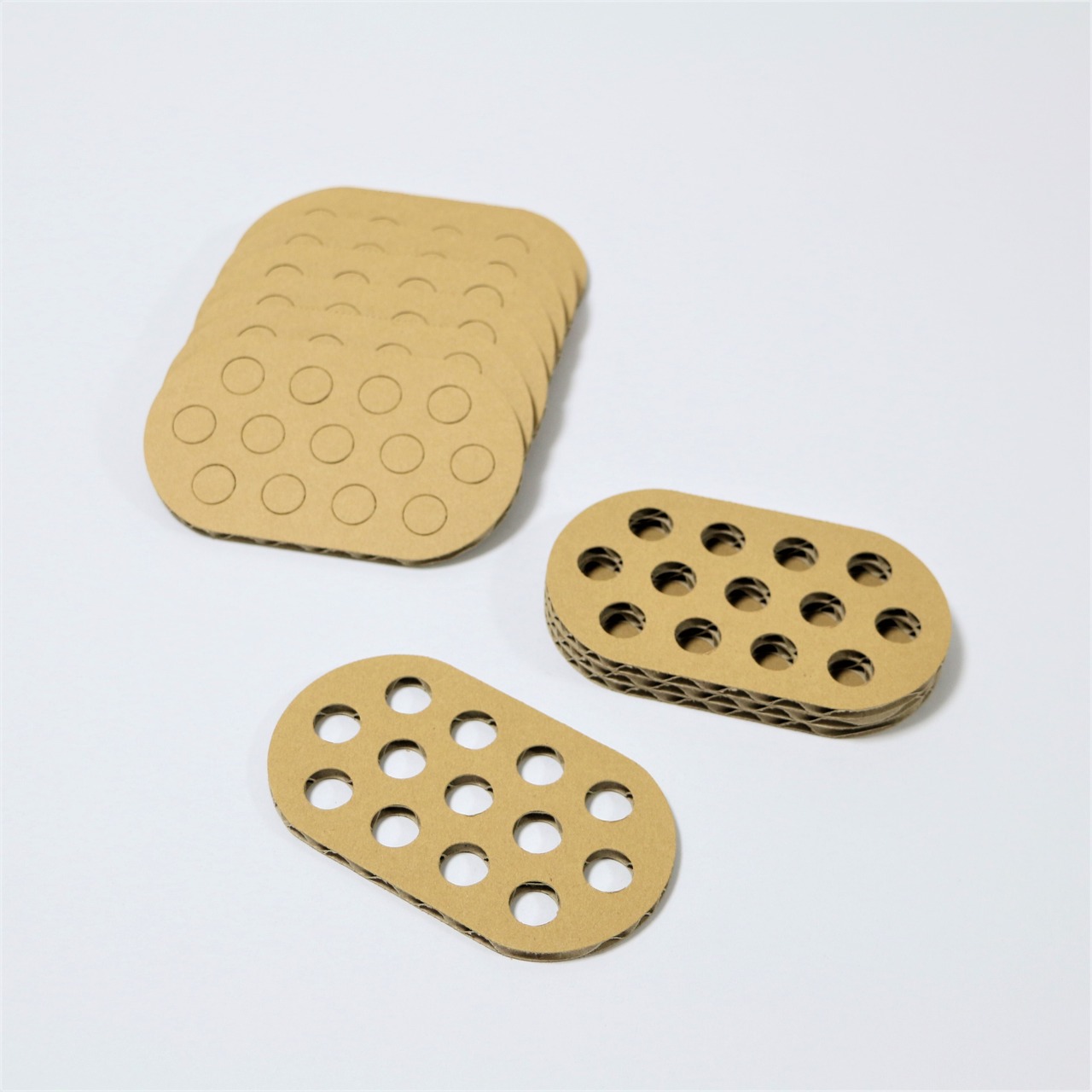 強化ダンボールパーツを接着して積み上げていく組み立てペンスタンド。