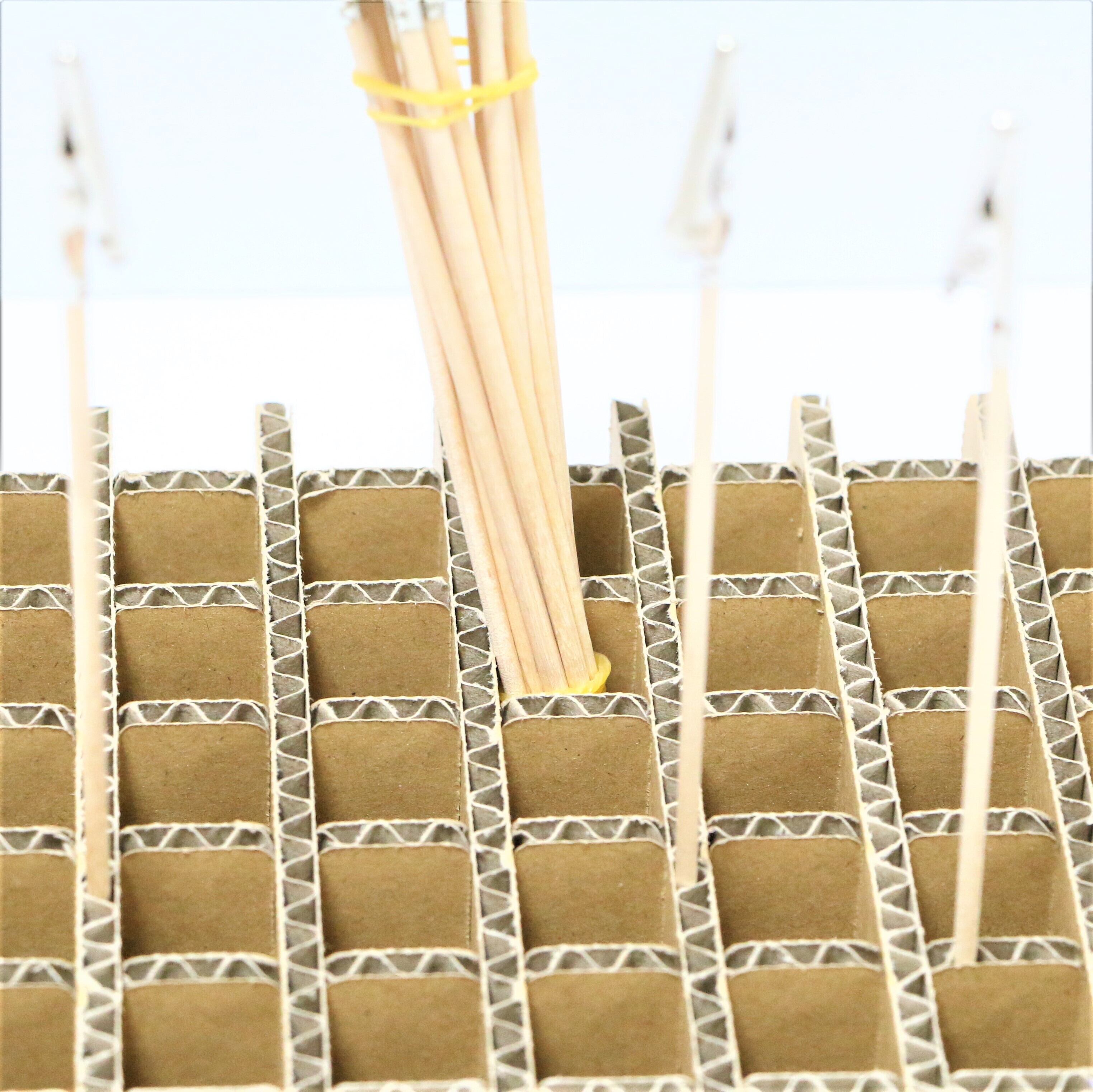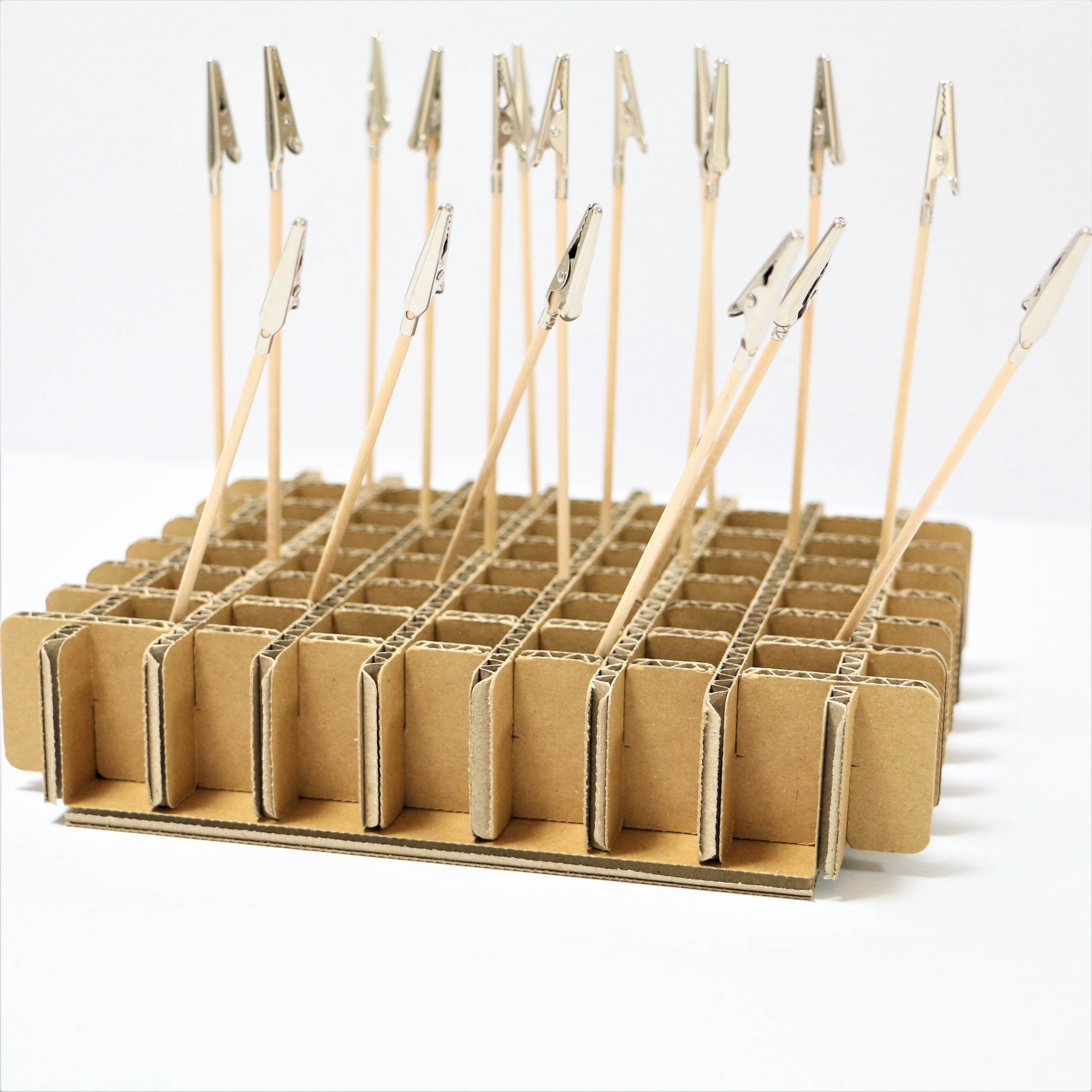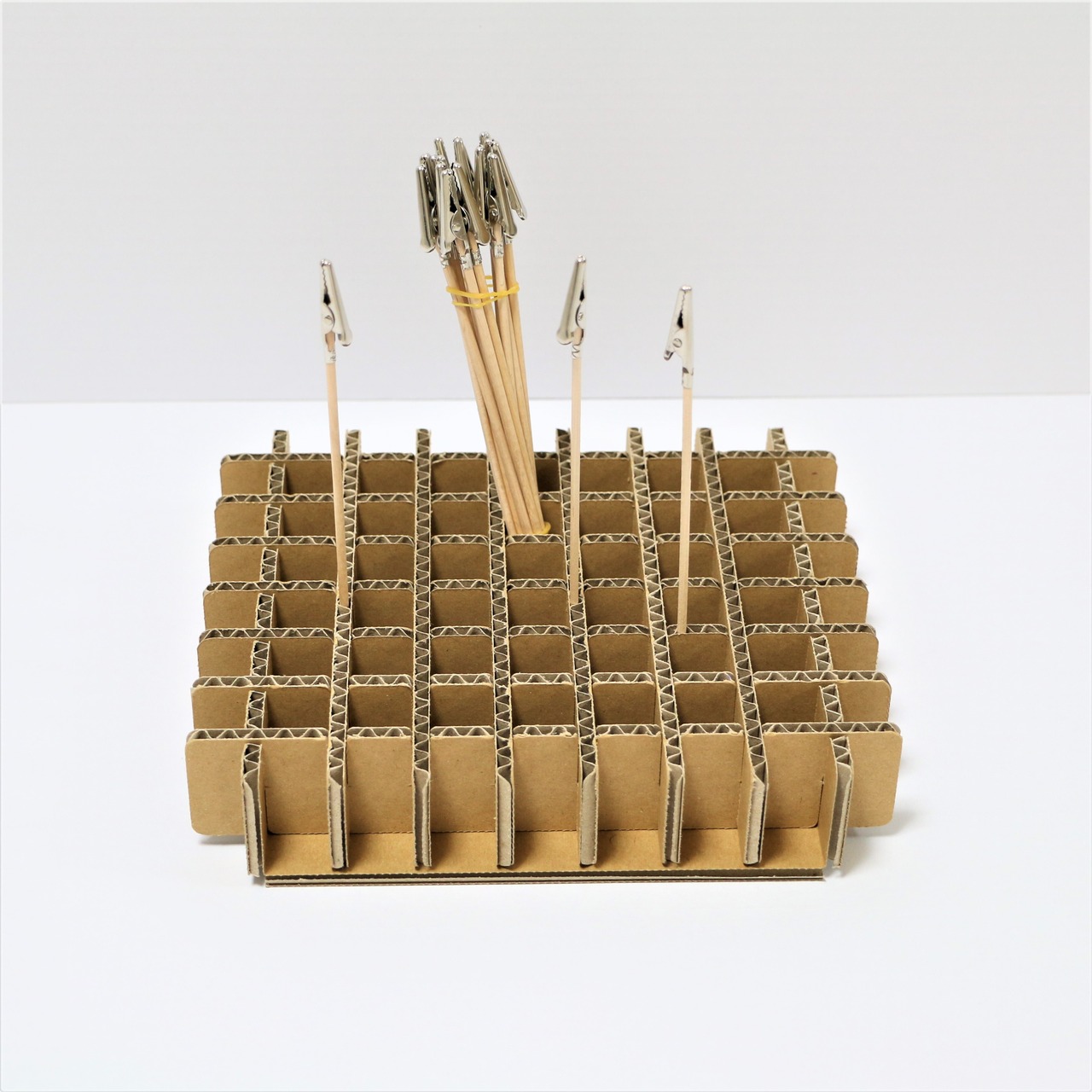 ・ダンボールのフルート(波型)に塗装クリップ棒を差し込んで使用。